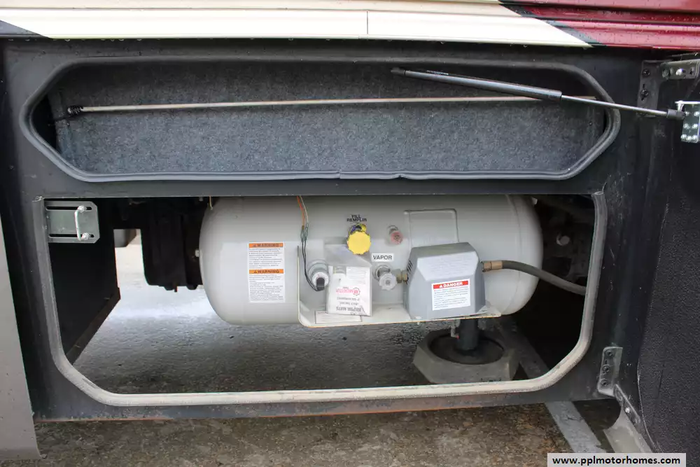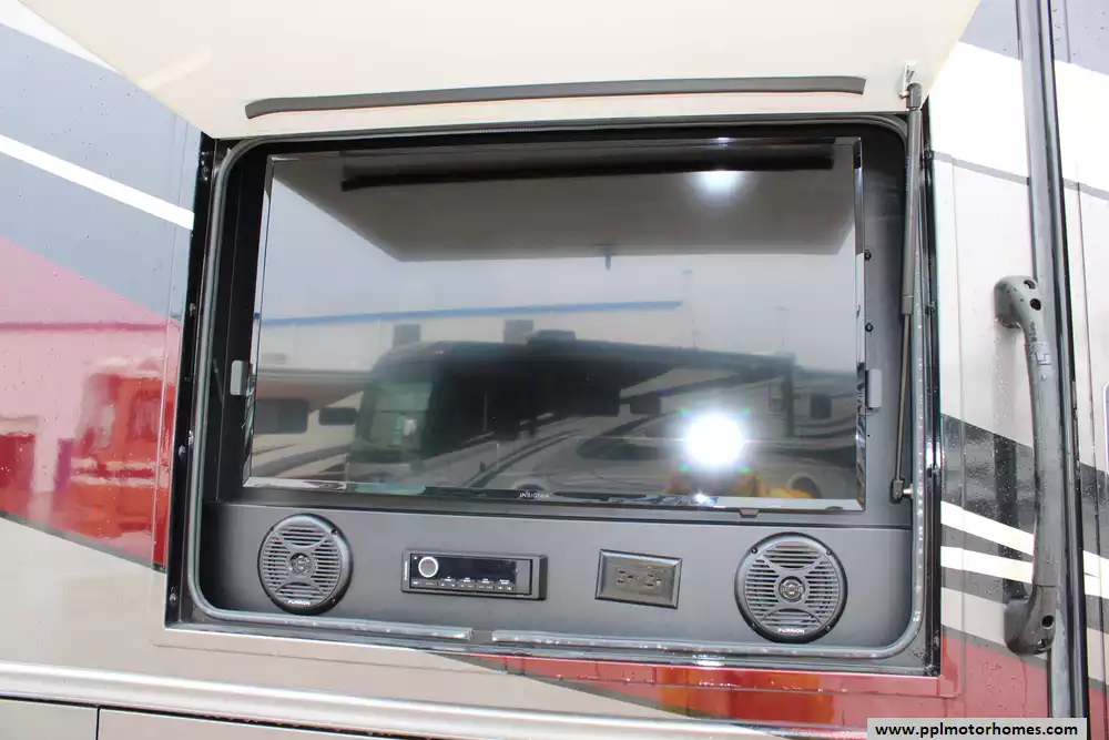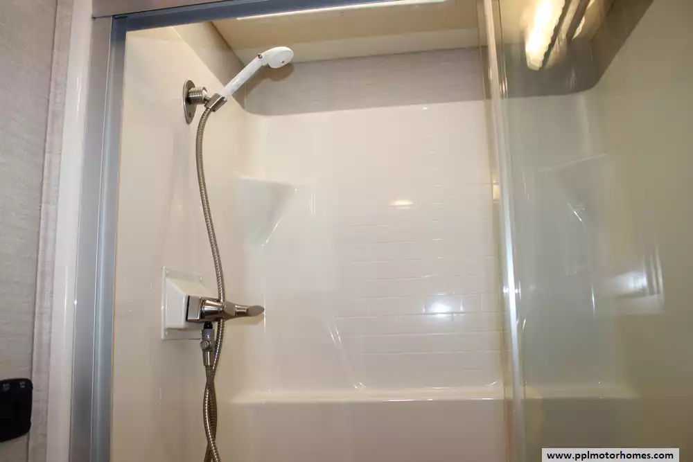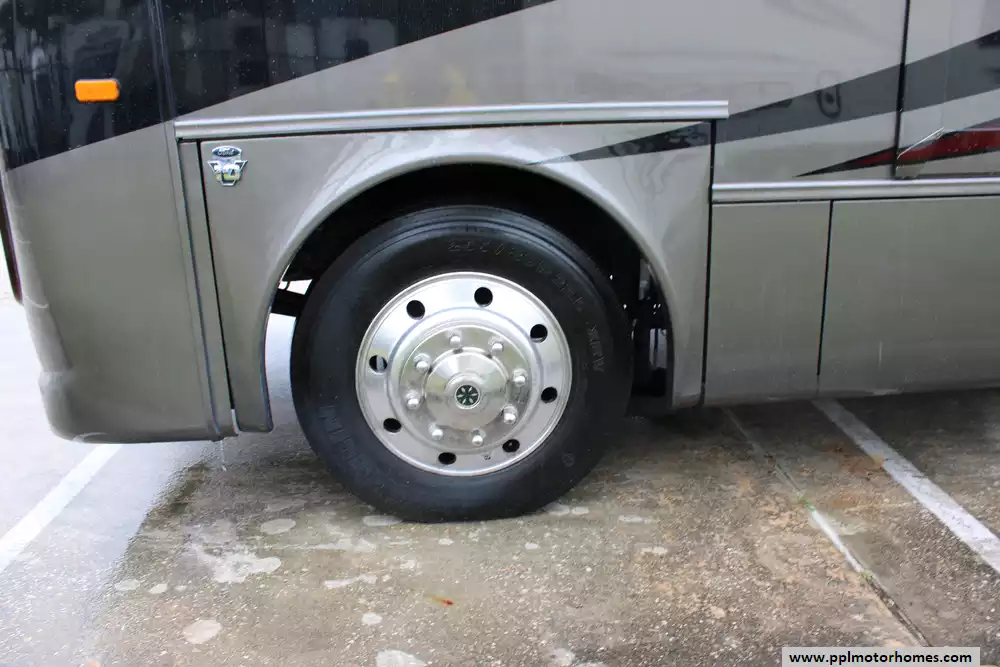 Specs: Length: 38.67 ft., Width: 8.42 ft., Height: 12.58 ft., Interior Height: 7 ft., Fuel Capacity: 80 gal., Total Fresh Water Tank Capacity: 72 gal., Total Gray Water Tank Capacity: 91 gal., Total Black Water Tank Capacity: 72 gal., Total Number of Propane Tanks: 1.