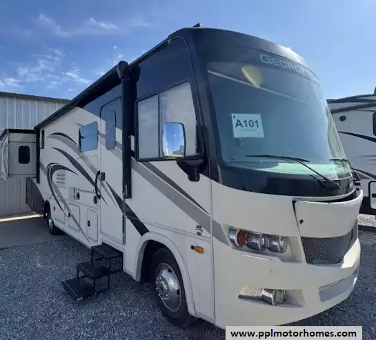 This 2019 Georgetown by Forest River 31L has a V10 Ford Engine On a Ford Chassis, 2 Slide-outs, Kohler Gas Generator, 2 Ducted Air Conditioners, 4 Door Gas/110v Whirlpool Refrigerator, Automatic Main Awning And Window Awning, Backup Camera, Outside Entertainment System, 3 TVs, Fireplace, Convection Microwave, 3 Burner Range, Oven