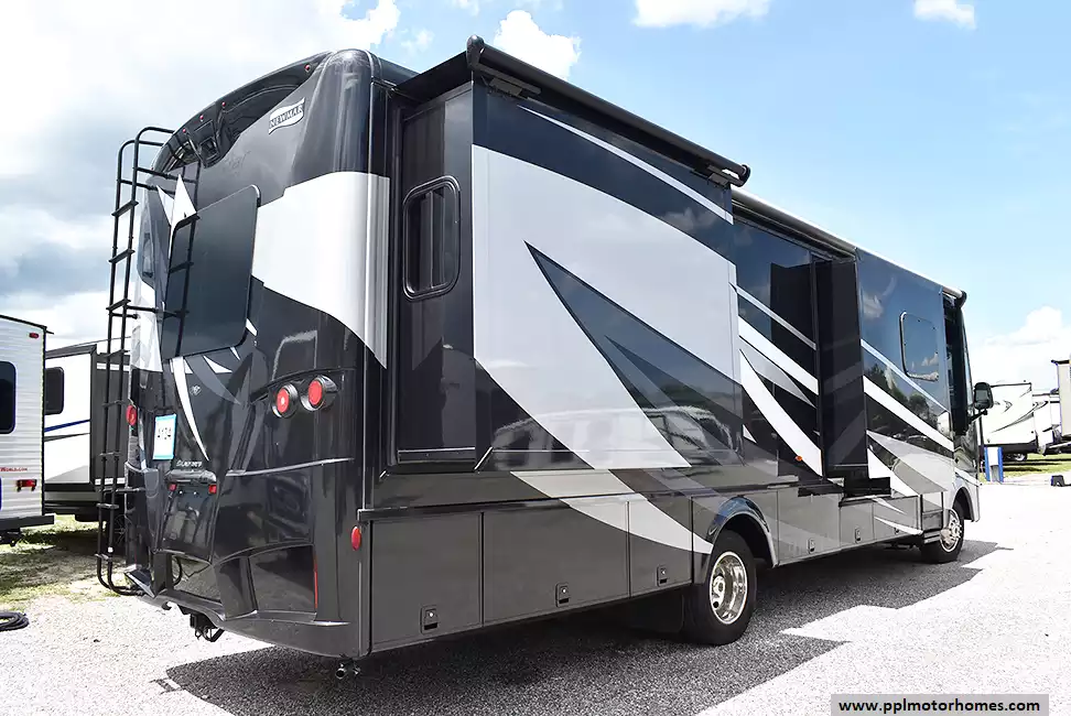This 2019 Bay Star Sport 3226 has a V10 Ford Engine On a Ford Chassis, 3 Slide-outs, Onan Gas Generator, 2 Ducted Air Conditioners, Levelers, Double Door Gas/110v Norcold Refrigerator, Automatic Main Awning And Slide Awning, Backup Camera, Satellite Dish & Receiver, 2 TVs, Microwave, 3 Burner Range, Oven