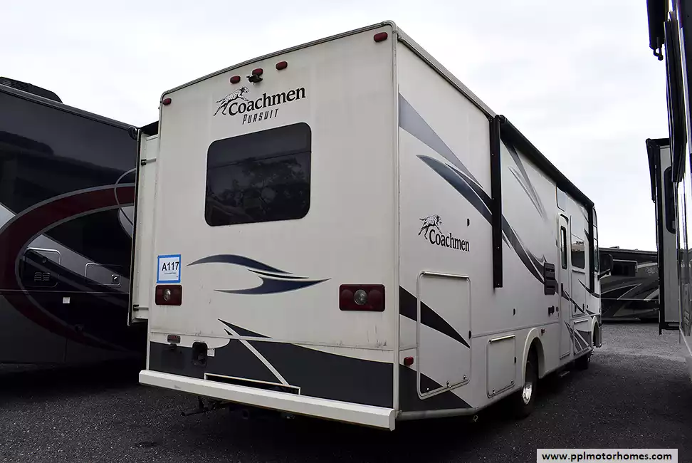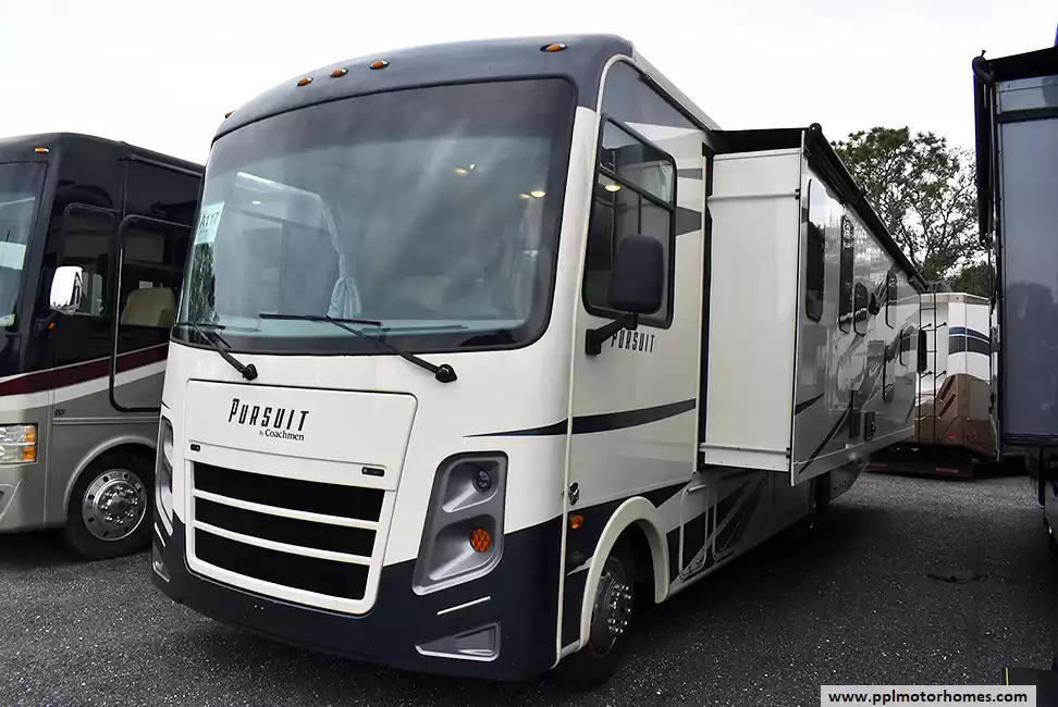 This 2020 Pursuit Series 31BH has a V10 Ford Engine, Air Bag Suspension, 1 Slide-out, 2 Non-Ducted Air Conditioners, Levelers, Double Door Dometic Refrigerator, Automatic Main Awning And Window/Slide/Door Awnings, Backup Camera, Heated Tanks, Outside Entertainment System, 3 TVs, Outside Shower, Microwave, 3 Burner Range, Oven