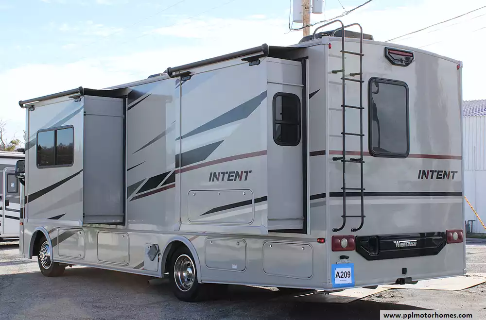 On the outside, the Intent 28Y continues to impress with a power patio awning with LED lighting, ample basement storage, automatic leveling jacks, and a 5,000-lb hitch--perfect for towing a small vehicle or trailer. Add in the onboard Cummins Onan generator, ducted A/C, and Winnebago's renowned build quality, and you have a Class A motorhome that's comfortable, reliable, and ready for adventure. If you're looking for a family-friendly, feature-packed Class A that's easy to own and easy to love, the Winnebago Intent 28Y deserves a serious look.
