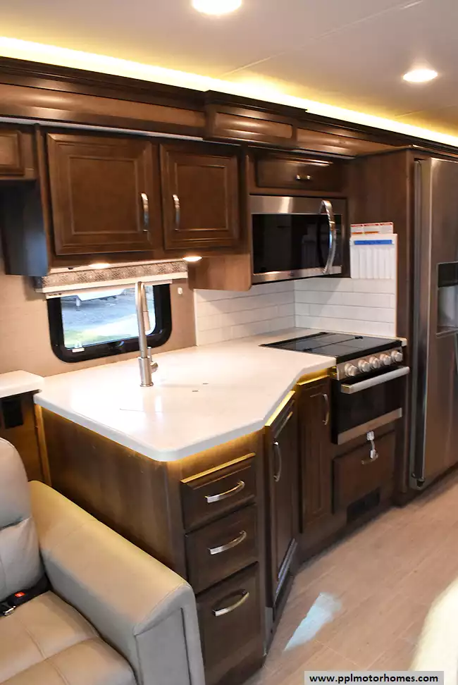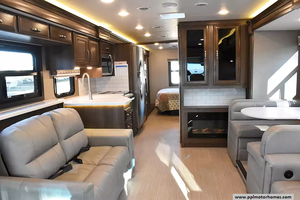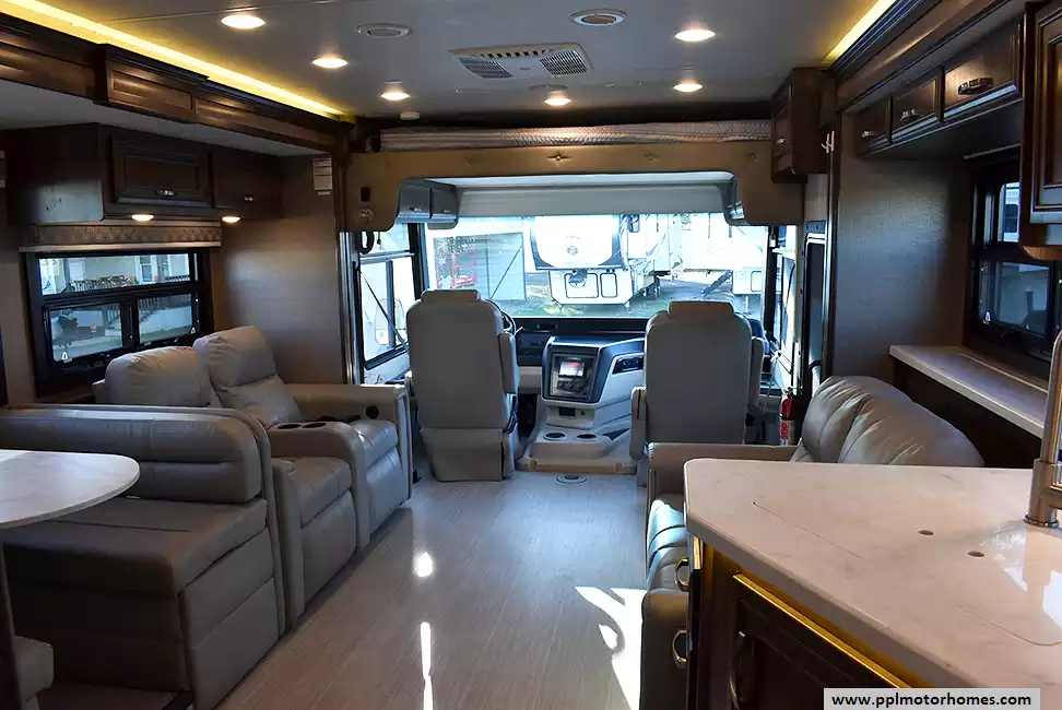 (Floor plan is NOT drawn to scale. Length of vehicle is approximate. Buyer is responsible for verifying actual length. PPL Motor Homes compiled this list of features, specifications, equipment and options as a guide. No representation or warranties, either express or implied, are made as to the accuracy of the information herein. Please verify for yourself all items listed before purchase.)