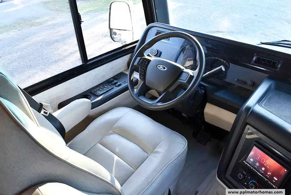 This 2022 Entegra Coach Vision XL 34G is a luxurious Class A motorhome built on the reliable Ford F53 chassis and powered by a robust 7.3-liter V8 gasoline engine that delivers 350 horsepower and 468 lb-ft of torque. Paired with a smooth 6-speed TorqShift automatic transmission featuring overdrive and tow/haul mode, it provides a confident and capable drive whether you're navigating highways or climbing mountain grades. With an 80-gallon fuel tank and a 5,000-pound towing capacity, it's well-suited for long adventures with room for additional gear or a towed vehicle.