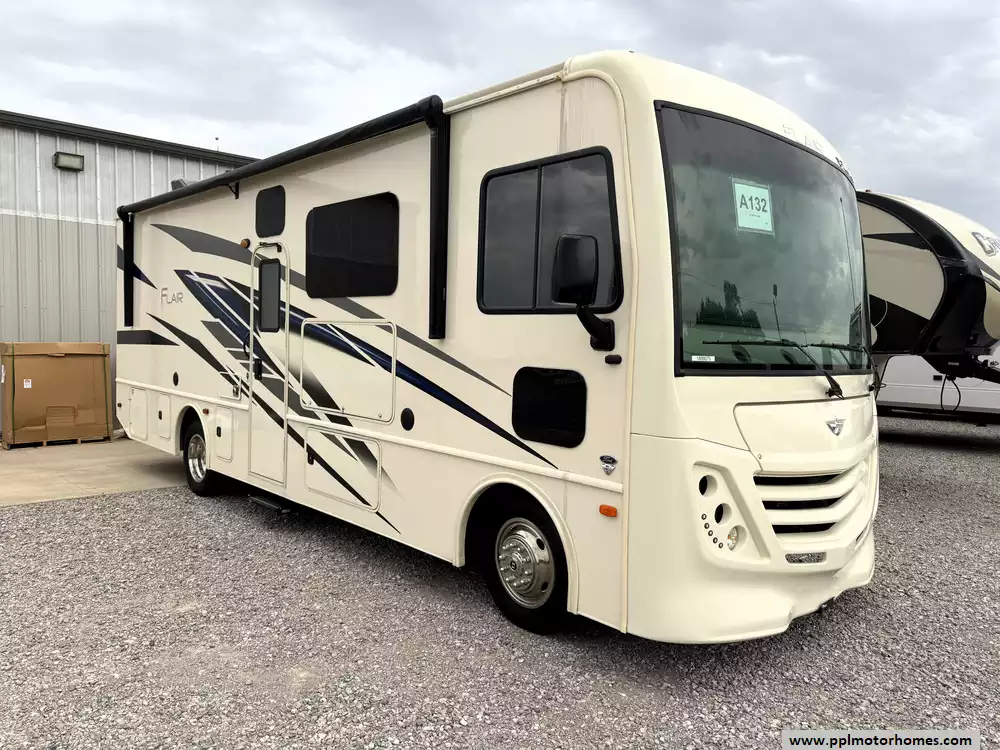 In Flair, there's no sight that's more inviting than the open road. That's because we've taken everything you'll need on your adventure and included it in this well-thought-out package. The new, larger 7.3 liter 350HP engine will carry you no matter what you have to tow. And with the new all-electronic instrument panel and digital dash, driving your RV becomes even more of a joy. With exterior comforts like kitchens and TVs, the fun doesn't need to be contained to inside the home. And that's a good thing, because Flair is designed for large groups. The 28A floorplan can easily sleep six. With features in abundance, this Flair is sure to attract attention.
