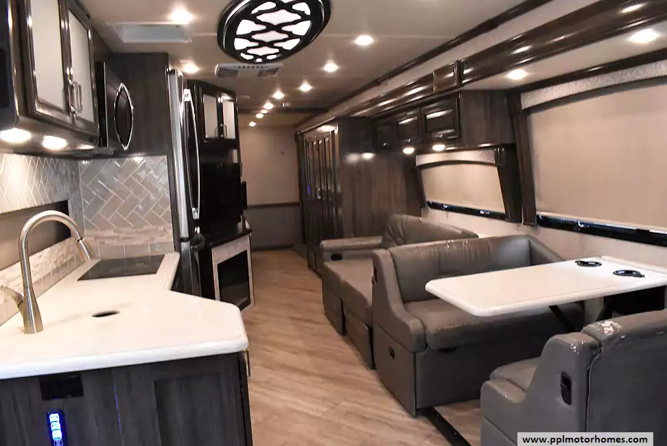 (Floor plan is NOT drawn to scale. Length of vehicle is approximate. Buyer is responsible for verifying actual length. PPL Motor Homes compiled this list of features, specifications, equipment and options as a guide. No representation or warranties, either express or implied, are made as to the accuracy of the information herein. Please verify for yourself all items listed before purchase.)
