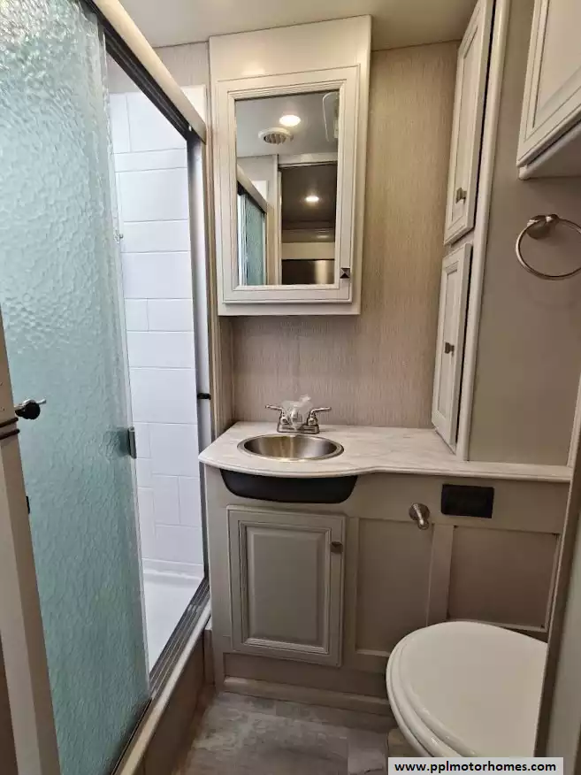 (Floor plan is NOT drawn to scale. Length of vehicle is approximate. Buyer is responsible for verifying actual length. PPL Motor Homes compiled this list of features, specifications, equipment and options as a guide. No representation or warranties, either express or implied, are made as to the accuracy of the information herein. Please verify for yourself all items listed before purchase.)