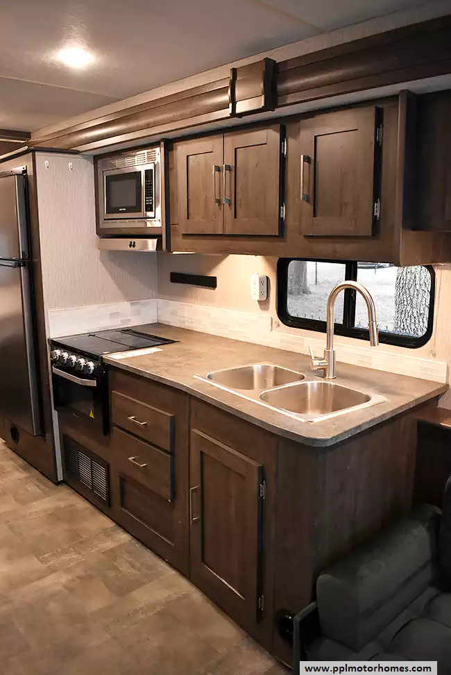 Tailor-made for the ultimate outdoor lifestyle, this unit boasts a fully equipped outdoor kitchen and an outside entertainment system with its own TV. Whether you are dry camping with the integrated solar panel and gas generator or plugged in to enjoy the dual ducted air conditioners, this motorhome is ready for any climate thanks to its heated tanks. The interior is equally impressive, offering a modern kitchen with a 12v Everchill double-door refrigerator, a three-burner range, oven, and microwave. With premium additions like a satellite receiver and radio, an automatic main awning, and an outside shower, the Pursuit 29SSP ensures every adventure is as comfortable as it is memorable.