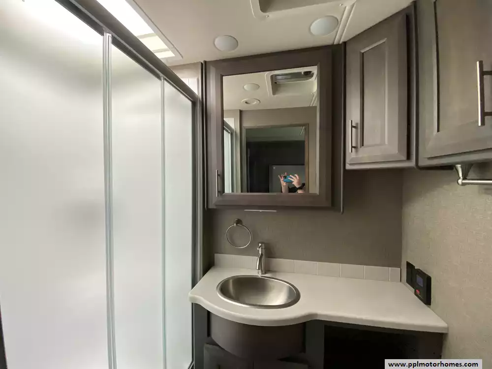 (Floor plan is NOT drawn to scale. Length of vehicle is approximate. Buyer is responsible for verifying actual length. PPL Motor Homes compiled this list of features, specifications, equipment and options as a guide. No representation or warranties, either express or implied, are made as to the accuracy of the information herein. Please verify for yourself all items listed before purchase.)