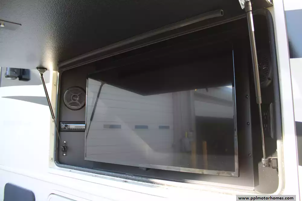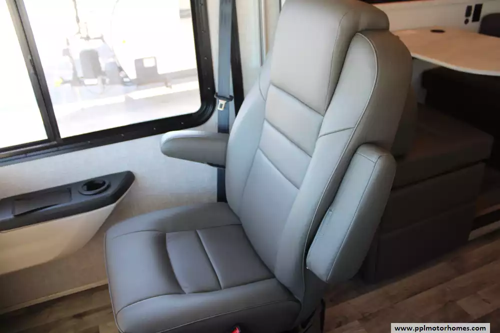 The 2023 Jayco Precept 31UL is a mid-sized Class A gas motorhome built on a Ford F-53 chassis, powered by a 7.3 L V-8 engine producing around 350 hp. At approximately 33 feet long and rated for a GVWR of 22,000 lbs, it balances drivability with generous living space. The design features include a panoramic 120" windshield, a solid-surface kitchen countertop with recessed stainless-steel sink, and a 21-cubic-foot residential refrigerator. Inside, there's room for up to six people, thanks to a main living area with opposing slides, a dinette, plus an optional drop-down overhead bunk. This model features the theater seat option facing a TV lift instead of the tri-fold sofa. You can monitor and control many coach functions via Jayco's JAYCOMMAND system, which integrates with a 7-inch touchscreen and app. The 31UL also offers strong structural build quality with Jayco's VBL lamination, bead-foam insulation, and an exterior entertainment center, all making it a comfortable, capable rig for both driving and camping adventures. Honorable mentions of this Precept include rear and side cameras, outside entertainment system, bed-side wireless charging pads, swivel seats, 190-watt solar panel, heated holding tanks, tankless on-demand water heating system, and frameless tinted windows. Also equipped is the Jayco "J-Ride Plus" which entails computer-balanced driveshaft, Bilstein steering stabilizer, front and rear jounce bumpers, heavy-duty front and rear stabilzer bars, 22.5-inch Michelin tires, and Koni shock absorbers. All this Precept needs is a new owner!