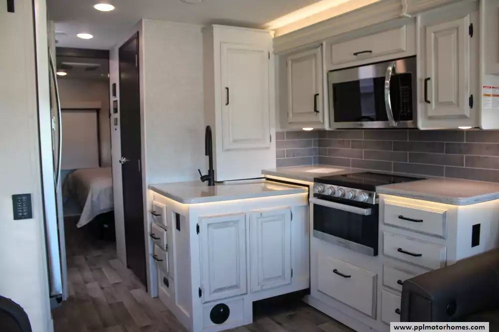 (Floor plan is NOT drawn to scale. Length of vehicle is approximate. Buyer is responsible for verifying actual length. PPL Motor Homes compiled this list of features, specifications, equipment and options as a guide. No representation or warranties, either express or implied, are made as to the accuracy of the information herein. Please verify for yourself all items listed before purchase.)