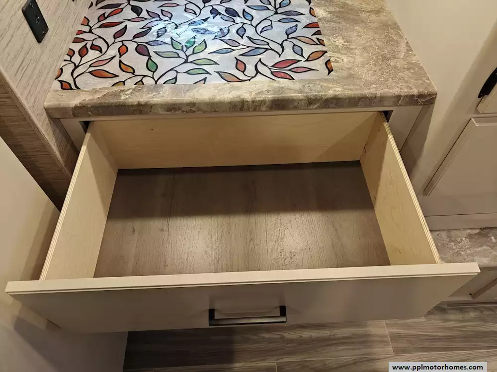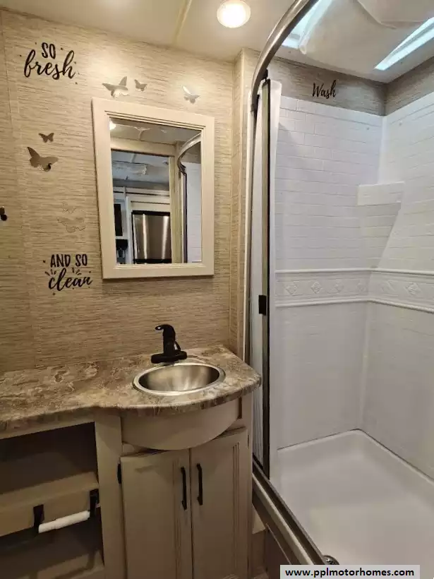 (Floor plan is NOT drawn to scale. Length of vehicle is approximate. Buyer is responsible for verifying actual length. PPL Motor Homes compiled this list of features, specifications, equipment and options as a guide. No representation or warranties, either express or implied, are made as to the accuracy of the information herein. Please verify for yourself all items listed before purchase.)
