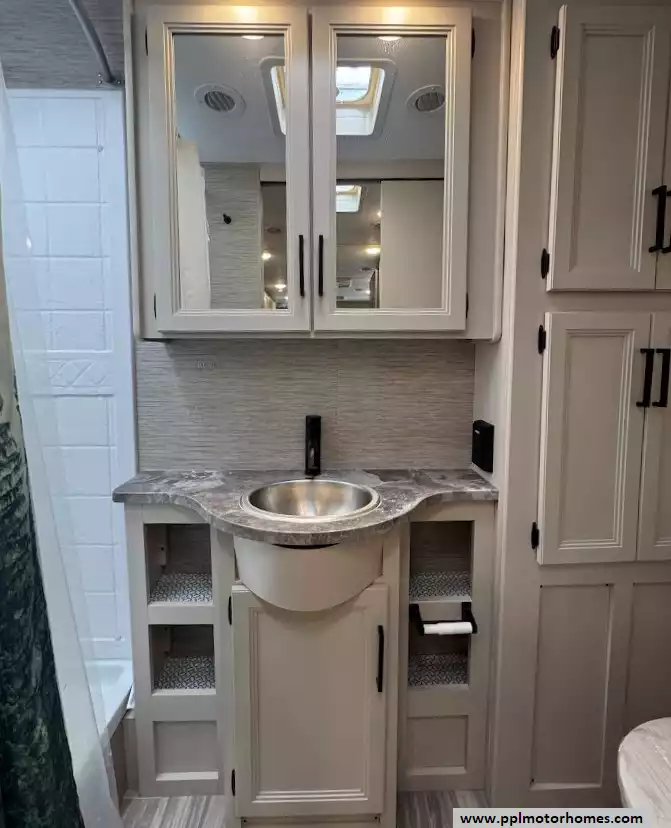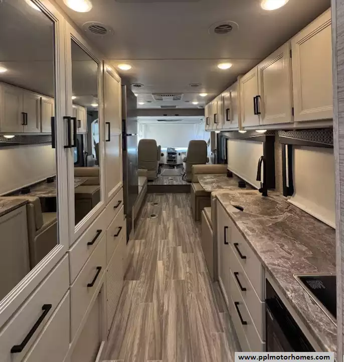 (Floor plan is NOT drawn to scale. Length of vehicle is approximate. Buyer is responsible for verifying actual length. PPL Motor Homes compiled this list of features, specifications, equipment and options as a guide. No representation or warranties, either express or implied, are made as to the accuracy of the information herein. Please verify for yourself all items listed before purchase.)