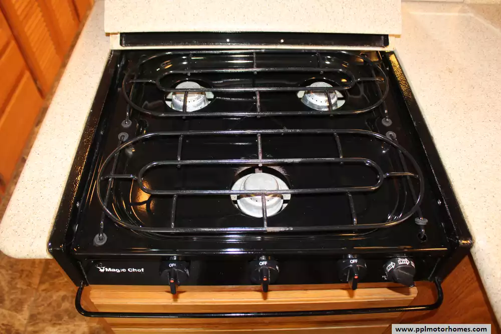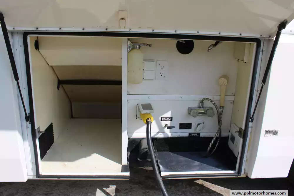 Specs: Length: 34 ft., Width: 8.6 ft., Height: 11.7 ft., Fuel Capacity: 150 gal., Total Fresh Water Tank Capacity: 102 gal., Total Gray Water Tank Capacity: 110 gal., Total Black Water Tank Capacity: 54 gal., Number of Propane Tanks: 1, Total Propane Tank Capacity: 42 gal.