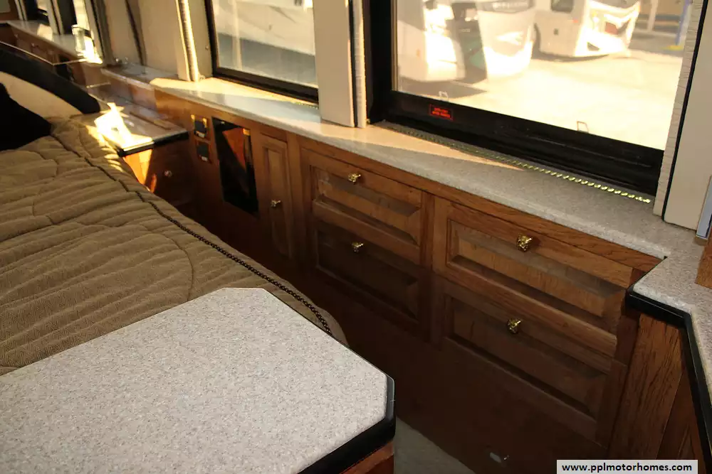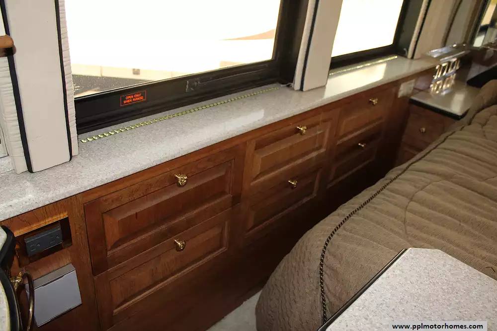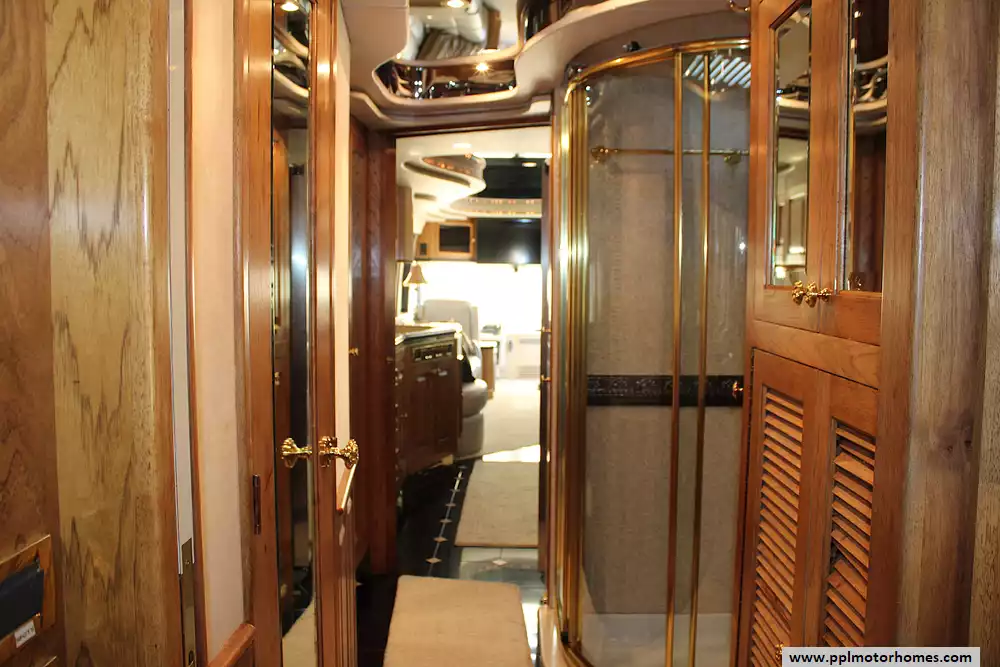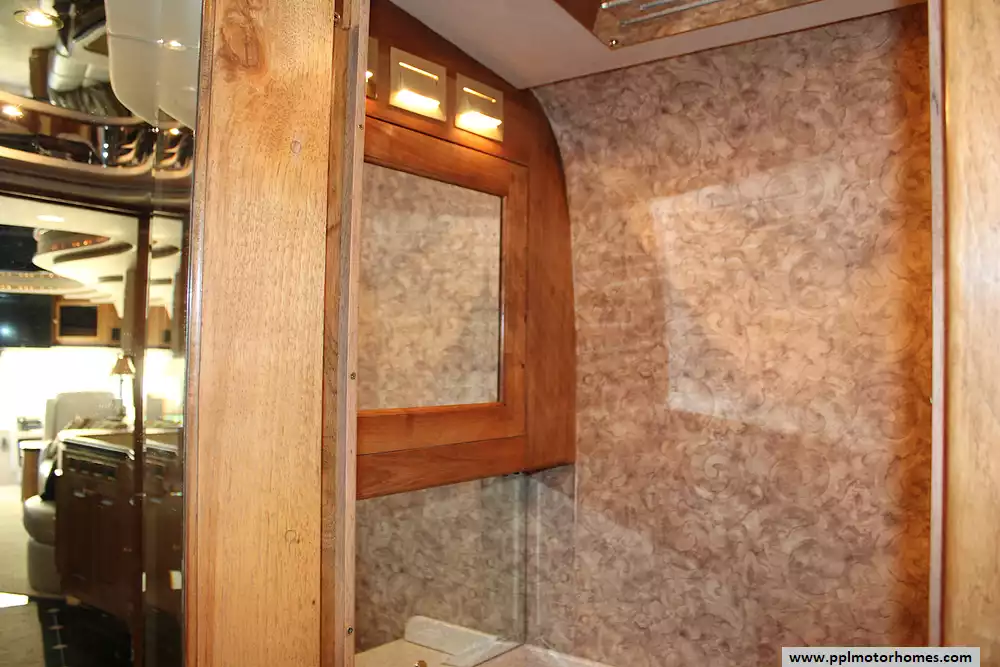 Inside, you're surrounded by custom workmanship-premium materials, hand-crafted cabinetry, upscale seating, and a layout designed to enhance relaxation and functionality without tying you to a specific floorplan. Because these coaches are individually built, each one carries its own personality, combining high-end finishes with thoughtful features like luxury climate control, advanced electrical systems, and residential-style amenities. Expect a spacious salon, a well-appointed galley, and a private rear stateroom that feels more like a boutique hotel suite than a motorhome bedroom. The beauty is in the details, and the details were clearly built by artisans.