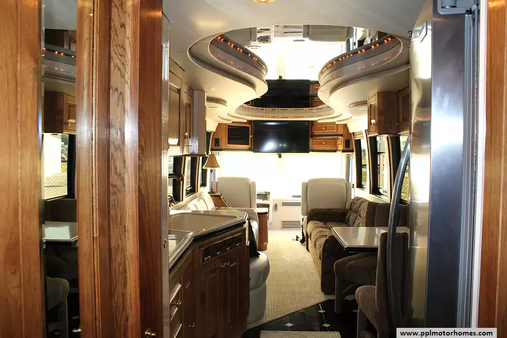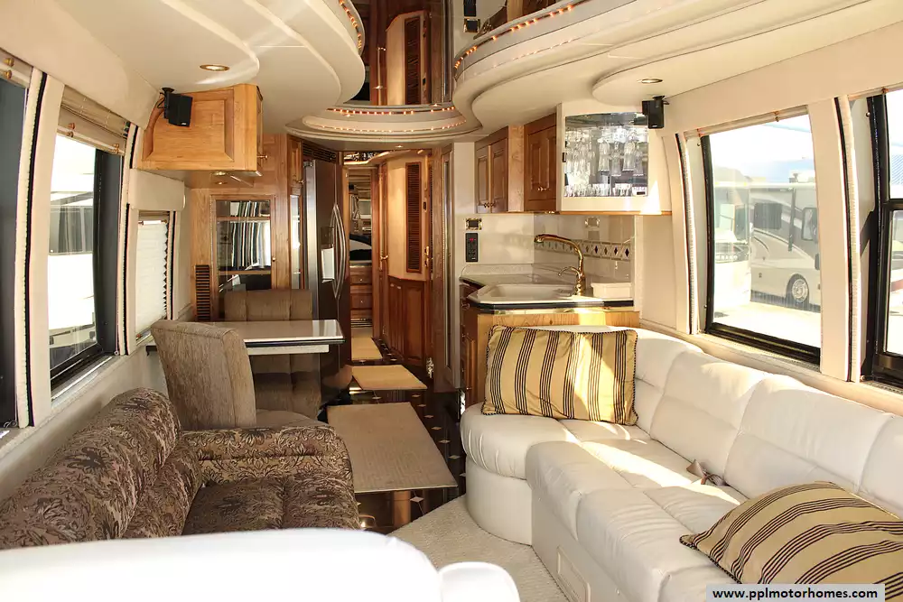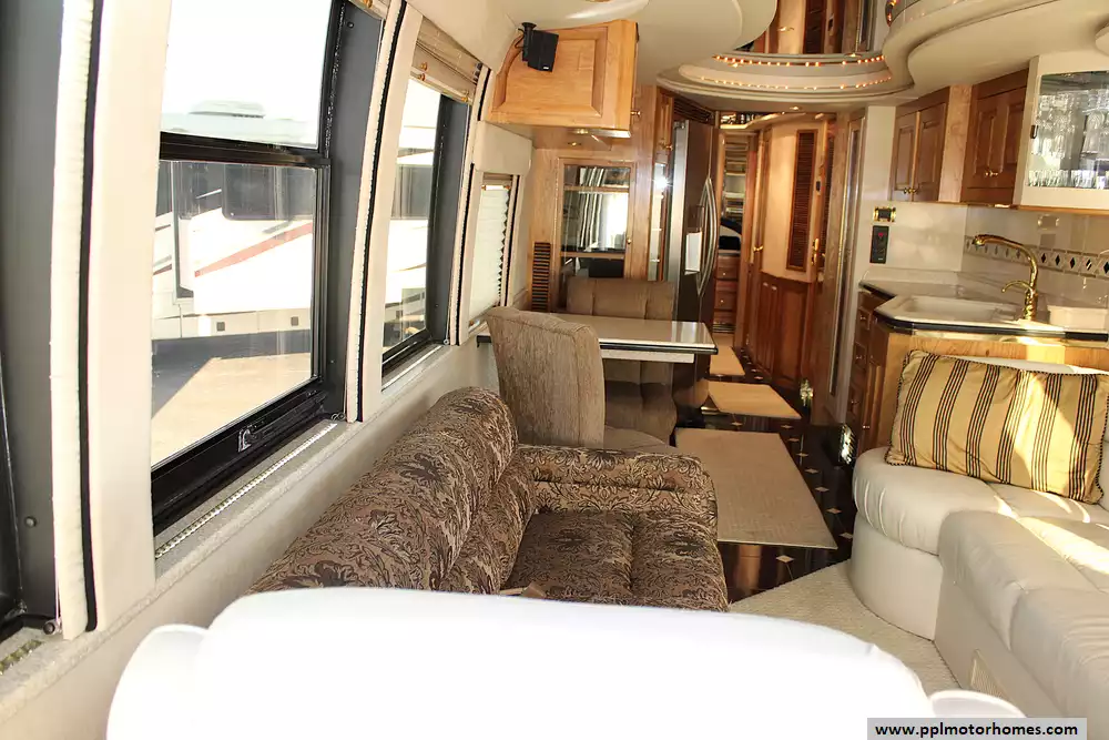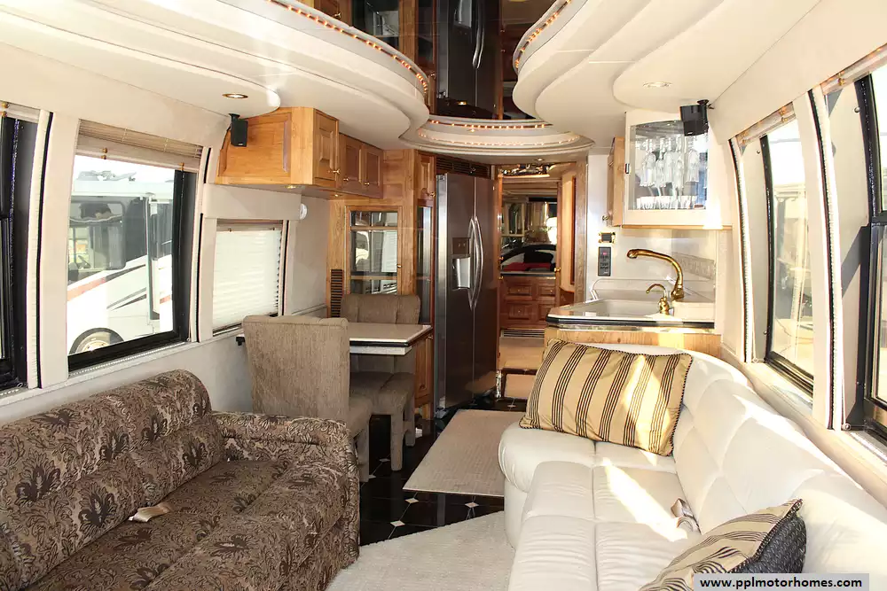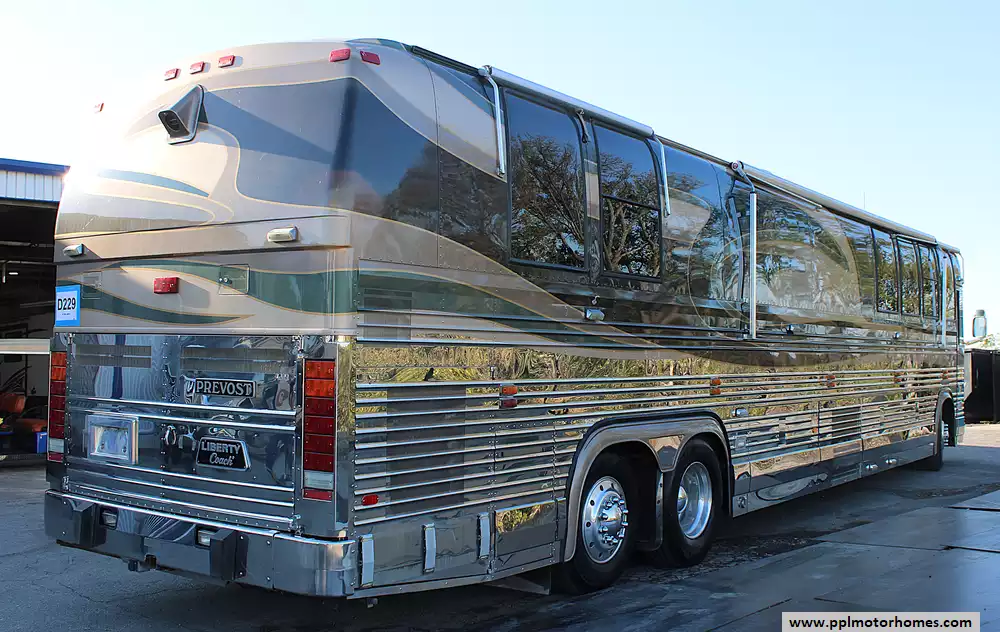 1999 Prevost Liberty Coach, a custom-built masterpiece designed for travelers who expect more from every mile. Built on a legendary bus-chassis foundation and finished by one of the most respected luxury converters, this coach blends elegance, power, and sophistication in a way few motorhomes can match. With room to comfortably sleep up to 4, it's ideal for couples who want extra space or small families seeking the highest tier of travel comfort. Every inch feels intentional, from the polished exterior presence to the refined interior flow.