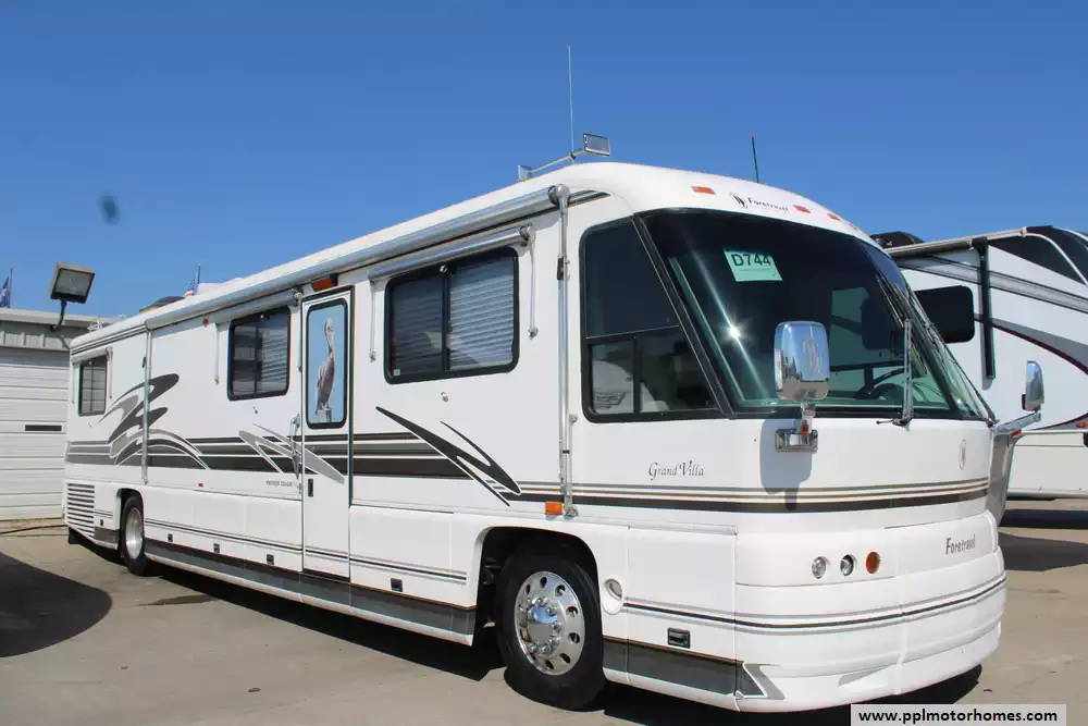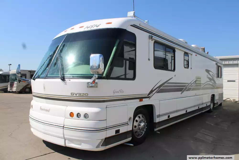 This 2000 Foretravel Grand Villa Series M4000 GV320 Is Being Sold As Is. Highlights Include.... A 450hp ISM Cummins Engine On A Foretravel Chassis, Air Ride Suspension, Exhaust Brake, Power Tech Diesel Generator, 2 Roof-Ducted Air Conditioners, Manual Leveling System, 110v Residential Samsung Refrigerator With In-Fridge Ice Maker, Manual Awning, Washer/Dryer, Backup Camera, Outside Entertainment System, 2 TVs, Satellite Radio Prep, Bose Surround Sound Speaker System, Outside Shower, Basement Cooler, Convection Microwave, 3 Burner Range, Power Cord Reel, Water Hose Reel, And More!