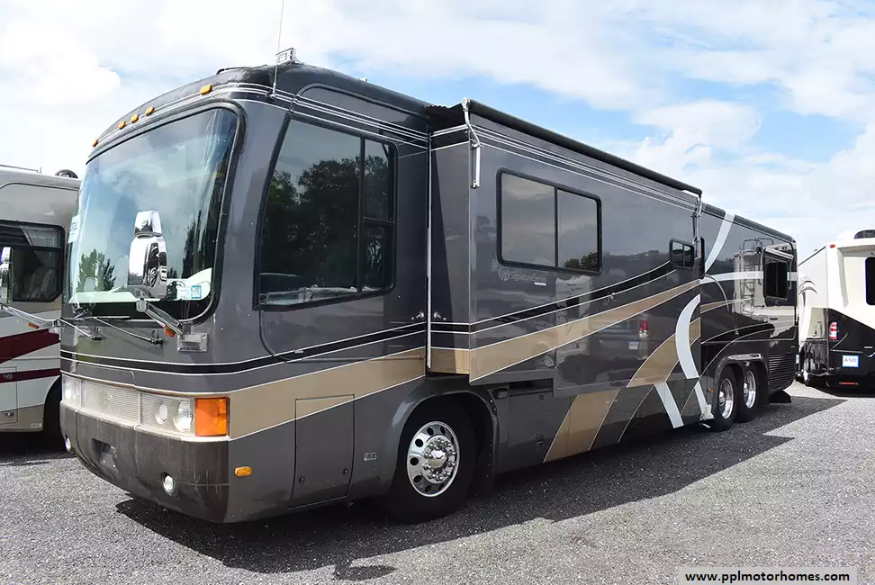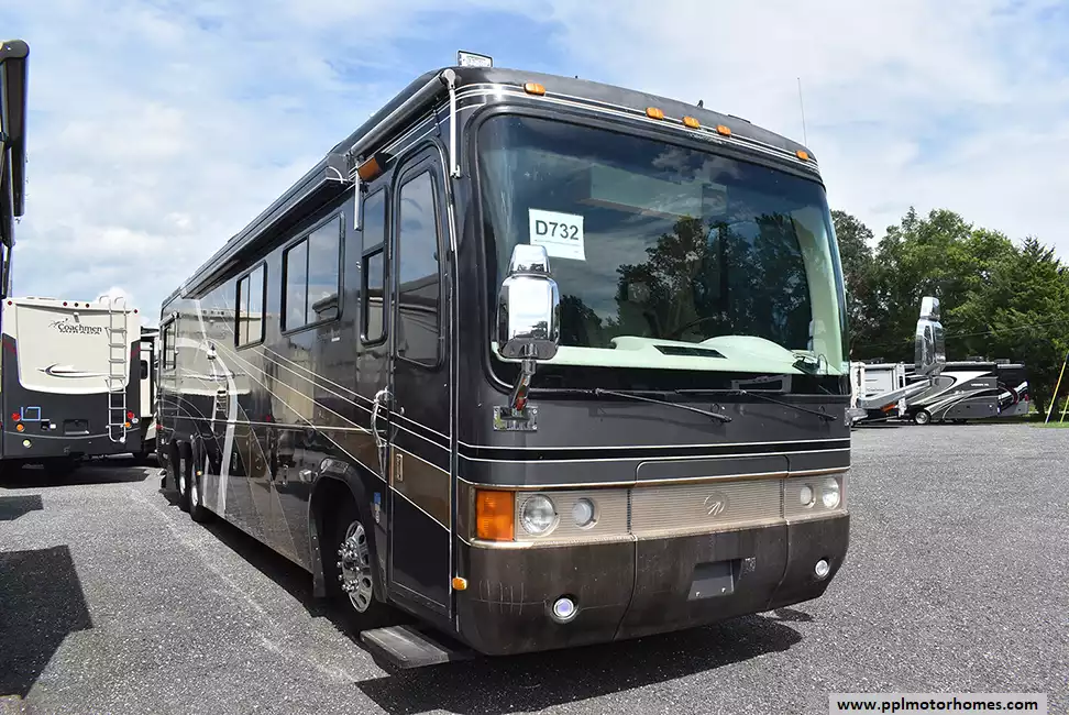 This 2000 Monaco Admiral Signature Series is a luxurious Class A motorhome offering a comfortable and stylish travel experience. This model features a spacious living area with plush seating, a fully-equipped kitchen with modern appliances, and a cozy bedroom with ample storage. The bathroom includes a full shower and vanity. Built on a durable chassis with a powerful engine, it ensures a smooth and reliable ride. The Admiral Signature Series combines elegance and functionality, making it ideal for extended road trips.