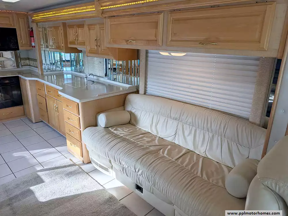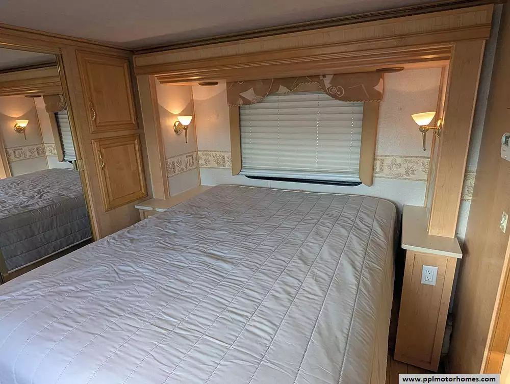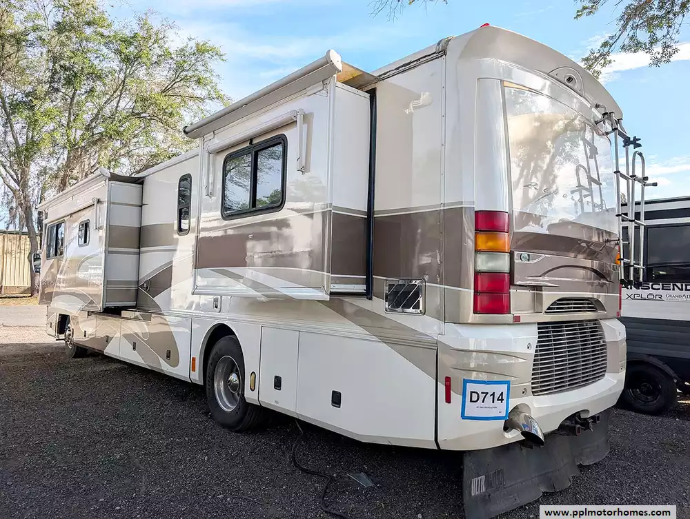 The 2001 Revolution by Fleetwood 40C is widely recognized by diesel pusher enthusiasts as a premier bridge coach, blending the trusted reliability of Fleetwood with the high-end luxury influence of the American Coach line. Built on a heavy-duty Freightliner chassis with air bag suspension, this motorhome is powered by the legendary 330hp 8.3L Cummins engine, known for its exceptional torque and longevity. Whether you are navigating mountain passes or cruising the highway, the integrated exhaust brake and backup camera ensure a confident and controlled driving experience. Its durable fiberglass body and roof are complemented by a comprehensive awning package, including an automatic main awning and dedicated window, slide, and door awnings, while the Onan diesel generator and automatic levelers provide effortless setup at any destination.