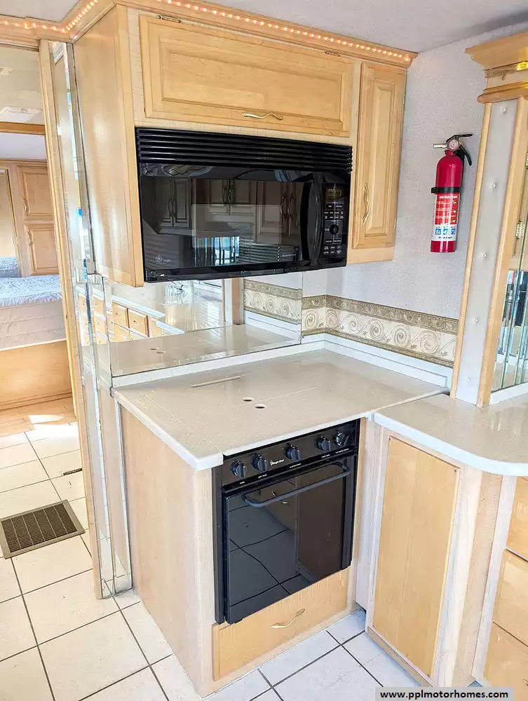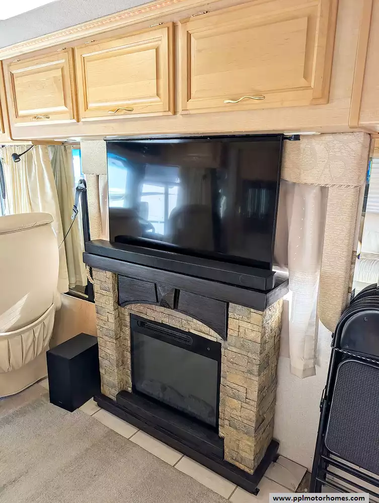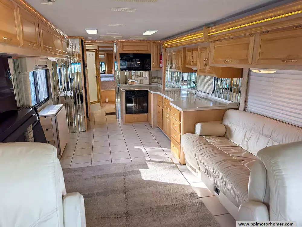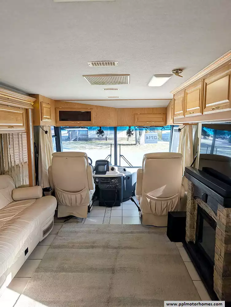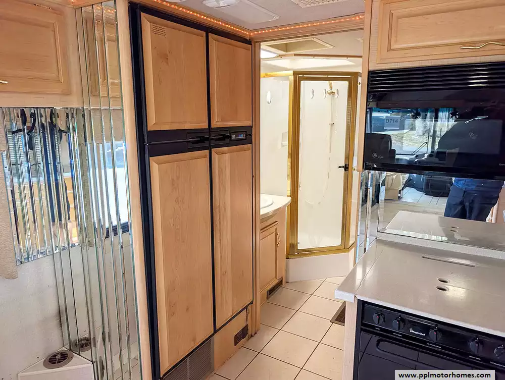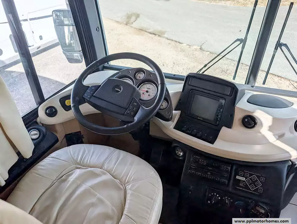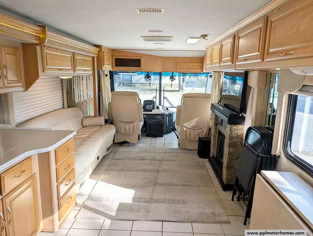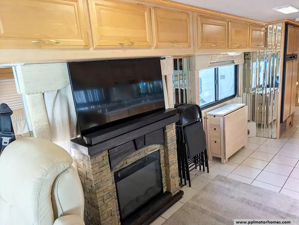 Inside, the dual-slide 40C layout creates an expansive living area that feels like a residential suite, highlighted by a cozy fireplace and premium cabinetry. The gourmet kitchen is exceptionally well-equipped for the road, featuring a massive four-door gas/electric Norcold refrigerator with an in-fridge ice maker, a convection microwave, a three-burner range, and a full oven. Designed for ultimate comfort and extended stays, this coach includes two ducted air conditioners, a central TV, and pre-plumbed washer/dryer connections. This Revolution 40C delivers the sophisticated lifestyle and structural integrity that made this model a gold standard in its class, offering a high-performance home on wheels that is ready for your next adventure.
