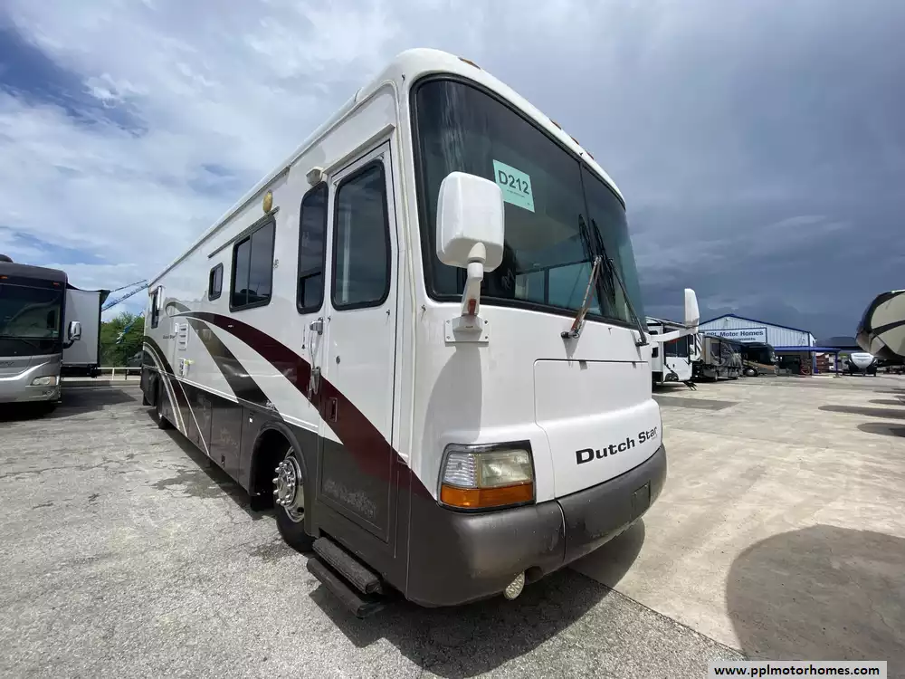 This 2001 Dutch Star by Newmar 3852 has a 330hp 8.3l Cummins Engine On a Spartan Chassis, Air Bag Suspension, Exhaust Brake, 2 Slide-outs, Onan Diesel Generator, 2 Ducted Air Conditioners, Levelers, Double Door Residential Ge Refrigerator, Stand-Alone Ice Maker, Washer/Dryer Connections, Backup Camera, Satellite Dish, 2 TVs, Outside Shower, Convection Microwave, 3 Burner Range