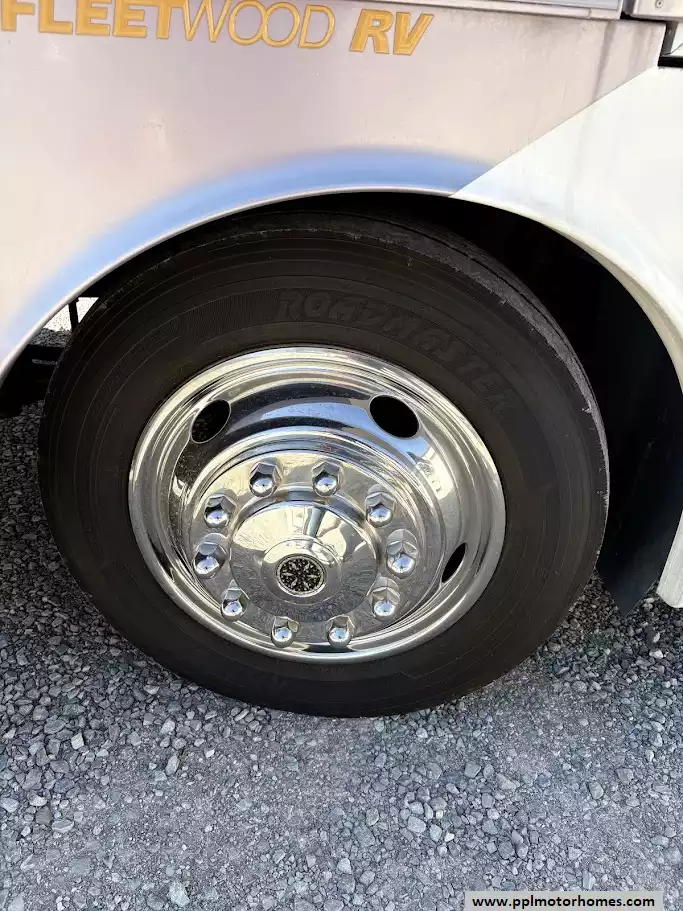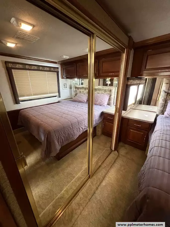 Inside, you will find every amenity necessary for effortless travel, including a fully equipped galley with a three-burner range, oven, convection microwave, and a massive four-door Norcold refrigerator. The living area is serviced by dual ducted air conditioners and features two TVs for entertainment, while the onboard washer/dryer combination adds a level of convenience usually reserved for high-end luxury coaches. The rear master suite features a second slide-out in the bedroom houses a large wardrobe and dresser to maximize floor space. An island queen bed with dual nightstands is situated at the very rear. Setting up camp is a breeze with the automatic main awning and hydraulic levelers, and the backup camera and outside shower add to the thoughtful utility of this classic model. Whether you are a full-timer or a weekend explorer, this Expedition 36T stands as a testament to Fleetwood's legacy of dependable, adventure-ready motorhomes.