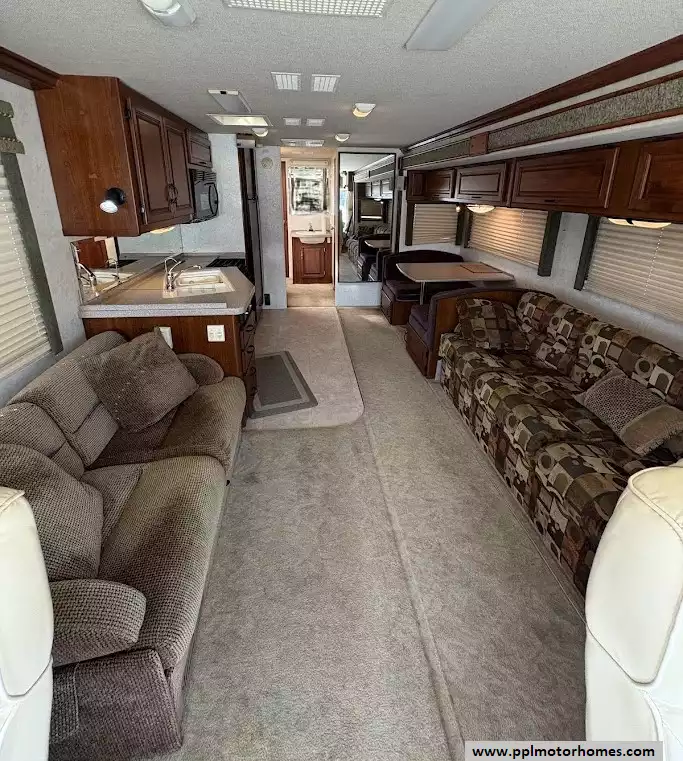 Experience the perfect blend of reliability and comfort with this 2002 Expedition by Fleetwood 36T. Renowned for its solid build quality and smooth handling on the Freightliner chassis, this 37-foot diesel pusher is designed for those who appreciate the longevity of Fleetwood's Vacu-bond construction and the convenience of a well-appointed floorplan. The ride is exceptionally stable thanks to the air ride suspension and exhaust brake, while the Onan diesel generator and heated tanks provide the peace of mind needed for extended stays or off-grid adventures. With two spacious slide-outs, this fiberglass motorhome offers an expansive interior that feels like a true home on the road.