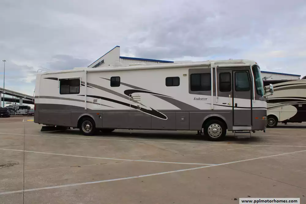 This 2002 Holiday Rambler Endeavor 38PBDD is a well-regarded Class A diesel pusher motorhome, known for its solid construction and comfortable amenities. Comforts Include...330hp Cummins Engine On a Roadmaster Chassis, 2 Slide-outs, 2 Ducted Air Conditioners, Refrigerator, Main/Window/Slide Awnings, and Backup Camera.