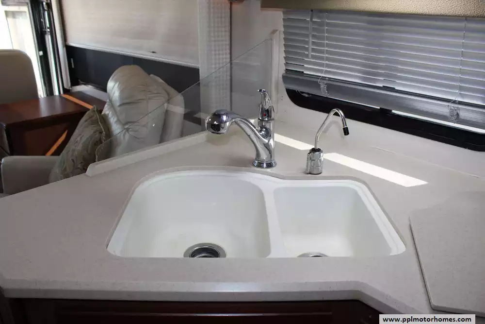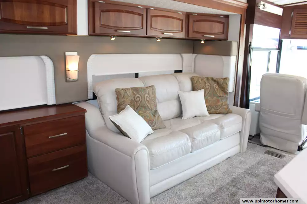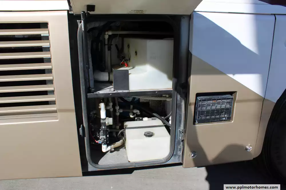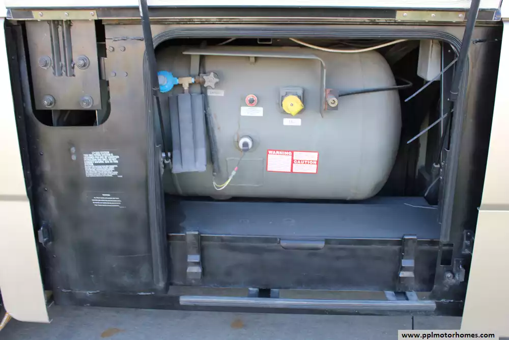 Specs: Length: 36.7 ft.,Width: 8.5 ft., Height: 12.2 ft.,Interior Height: 6.8 ft., Fuel Capacity: 100 gal.,Total Fresh Water Tank Capacity: 109 gal.,Total Gray Water Tank Capacity: 54 gal.,Total Black Water Tank Capacity: 50 gal.,Total Number of Propane Tanks 1., Propane Tank Capacity: 39 gal.