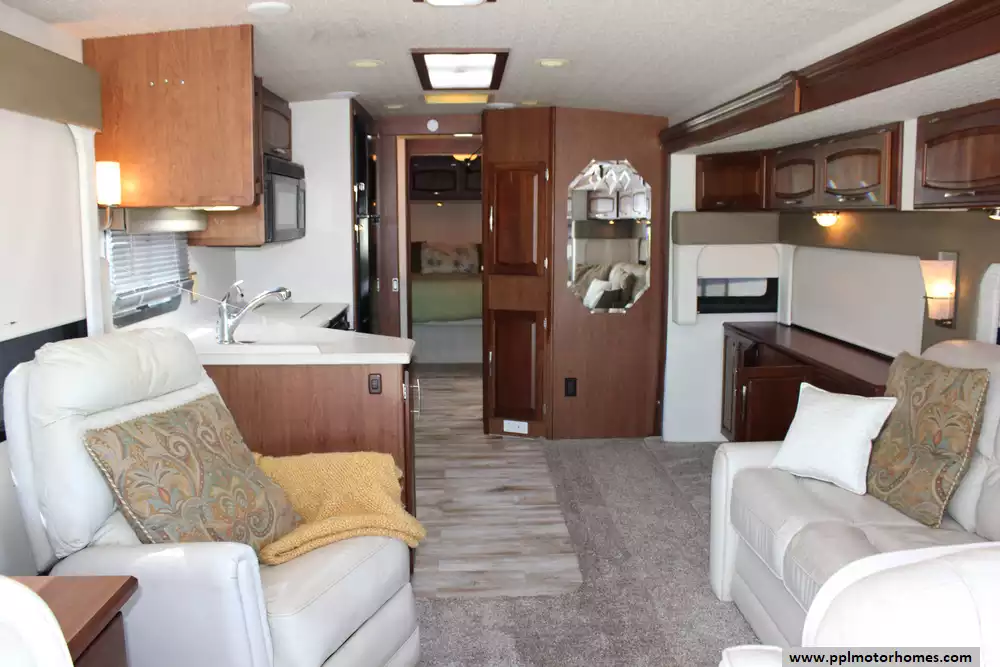 (Floor plan is NOT drawn to scale. Length of vehicle is approximate. Buyer is responsible for verifying actual length. PPL Motor Homes compiled this list of features, specifications, equipment and options as a guide. No representation or warranties, either express or implied, are made as to the accuracy of the information herein. Please verify for yourself all items listed before purchase.)