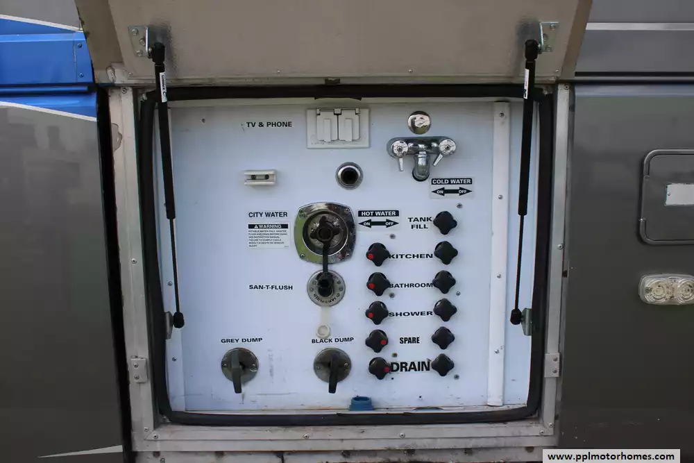 Specs: Length: 37.10 ft., Width: 8.5 ft., Height: 11.9 ft., Interior Height: 6.7 ft., Fuel Capacity: 99 gal., Total Fresh Water Tank Capacity: 100 gal., Total Gray Water Tank Capacity: 50 gal., Total Black Water Tank Capacity: 50 gal., Number of Propane Tanks: 1, Total Propane Tank Capacity: 51 lbs.
