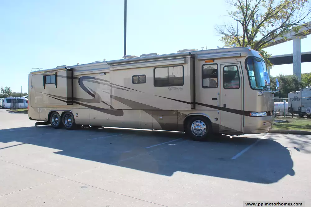 This 2004 Monaco Executive 43PBQ DETROIT 6 offers a compelling mix of size, features, and build quality. Features Include...500hp 11.0l Cummins Engine, Air Bag Suspension, Exhaust Brake, 4 Slide-outs, Onan Diesel Generator, 3 Ducted Air Conditioners, Levelers, 4 Door Gas/110v Norcold Refrigerator, Automatic Main Awning And Window/Slide/Door Awnings, Washer/Dryer, Backup Camera, Solar Panel, Heated Tanks, Satellite Dish, TV, Outside Shower, Microwave, and 2 Burner Range.
