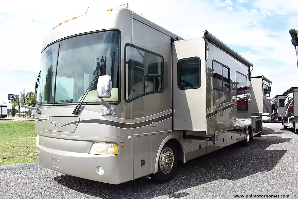 This 2005 Country Coach Inspire Genoa is a luxury Class A motorhome that offers a perfect blend of comfort and functionality. Powered by a reliable Caterpillar engine, it features a spacious floor plan with high-quality furnishings. The living area includes plush seating, while the kitchen comes equipped with modern appliances and ample storage. The master bedroom boasts a comfortable queen bed and plenty of closet space. With its elegant design and premium amenities, the Inspire Genoa ensures a top-notch RV experience.
