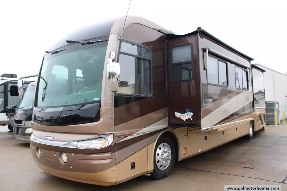 This 2005 Fleetwood Revolution LE 40E Needs A New Owner! Some Features Include... A 400HP 8.8L C9 Caterpillar Engine On A Chassis, Air Bag Suspension, Exhaust Brake, 3 Slide-Outs, Onan 7,500-Watt Diesel Generator, Heated Side Mirrors, Soft-Touch Vinyl Ceiling, 2 Ducted Air Conditioners, Automatic Levelers, 110v Residential Samsung Refrigerator, In-Fridge Ice Maker, Automatic Main Awning With Wind Sensor And Window/Slide/Door Awnings, One-Piece Washer/Dryer Combo, Backup Camera, Solar Panel, Satellite Dish & Receiver, Outside Entertainment System (TV), 2 TVs, DVD Player, VHS Player, Panasonic Home Theater Sound System, Satellite Radio Ready, Ceiling Fan, Outside Shower, Central Vacuum, Convection Microwave, 3 Burner Range, And More! Start Your Next Chapter In The Revolution! Ask About PPL's Convenient Financing Options!