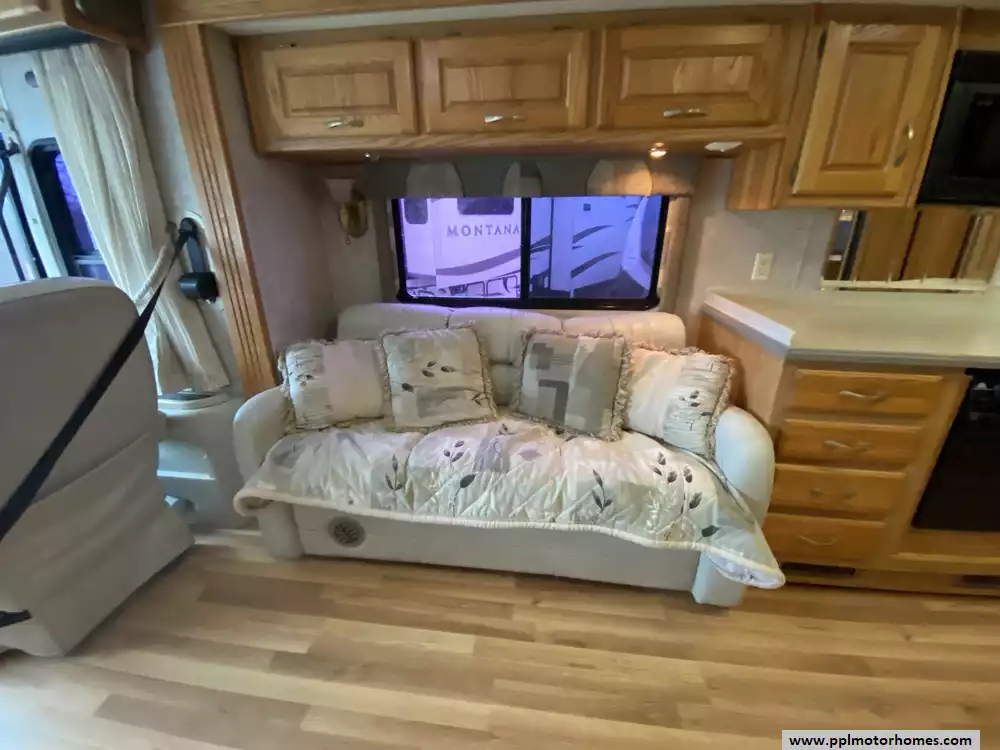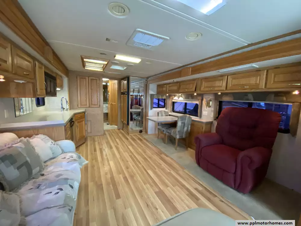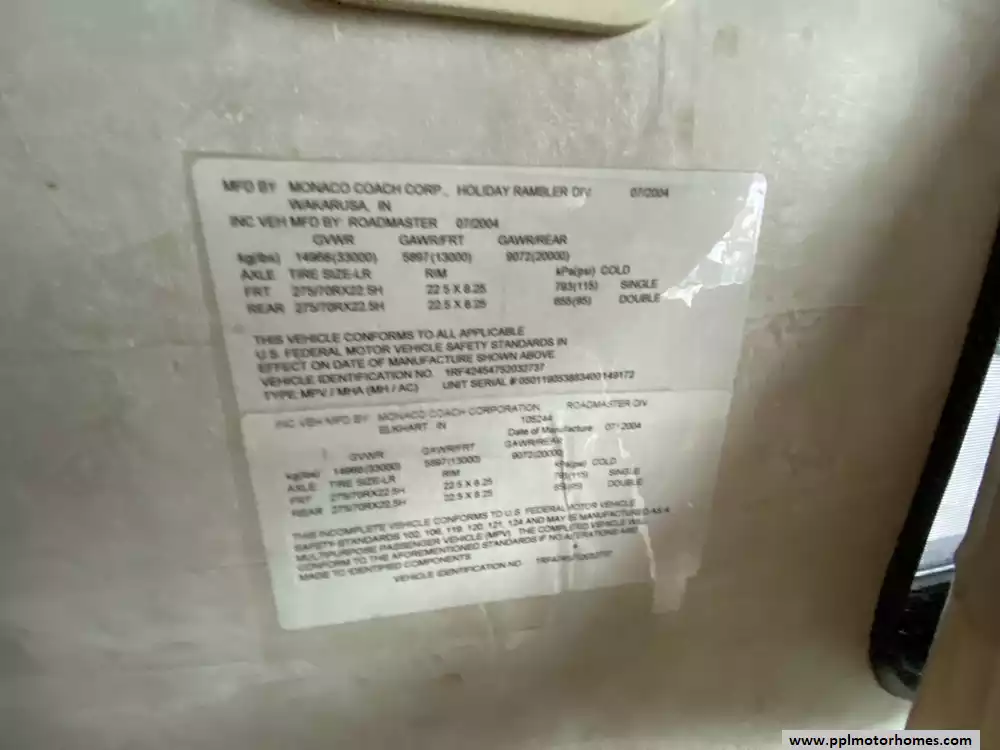 This 2005 Holiday Rambler Ambassador 38PDQ has a 330hp 8.3l Cummins Engine On a Roadmaster Chassis, Air Bag Suspension, Exhaust Brake, 4 Slide-outs, Onan Diesel Generator, 2 Ducted Air Conditioners, Levelers, 4 Door Norcold Refrigerator, In-Fridge Ice Maker, Automatic Main Awning And Window/Door Awnings, Washer/Dryer, Backup Camera, Solar Panel, Heated Tanks, TV, DVD Player, Outside Shower, Microwave, 3 Burner Range, Oven