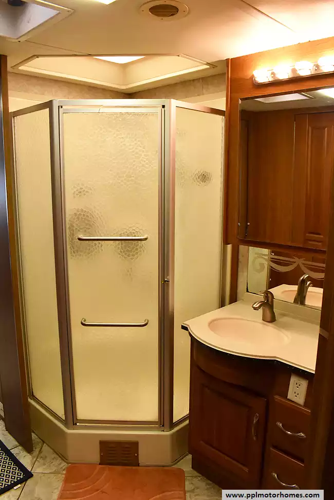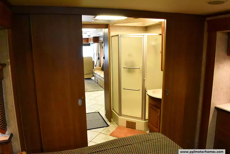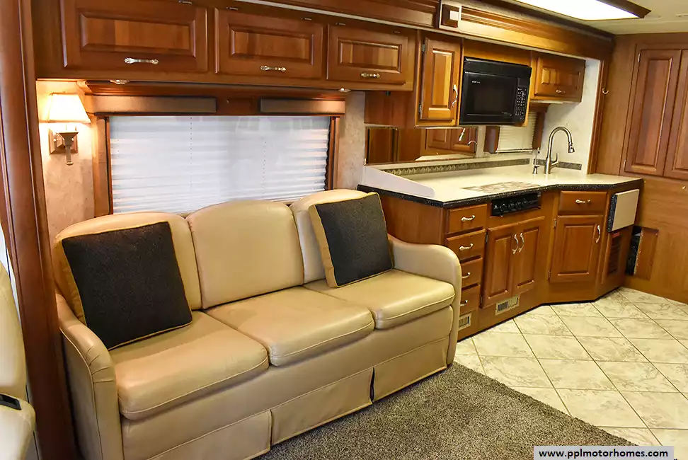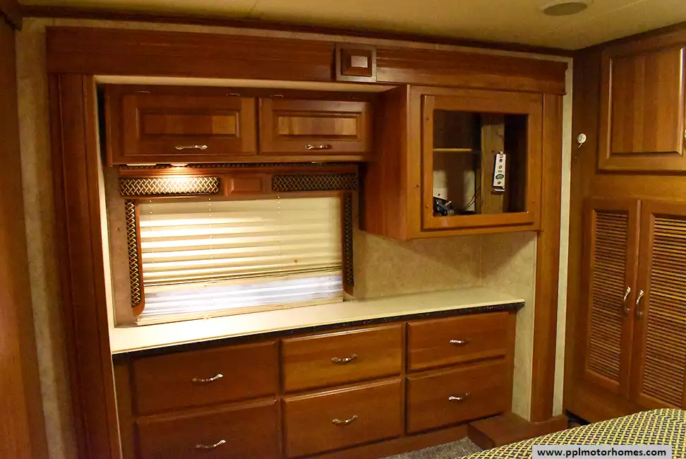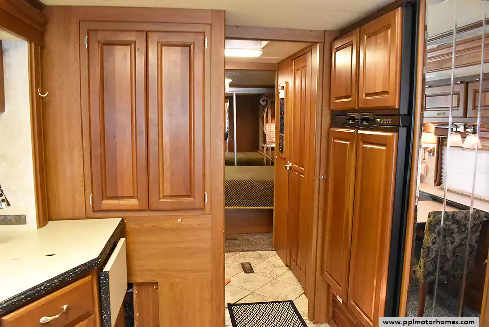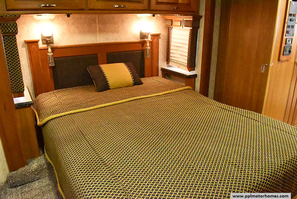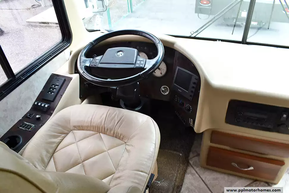 This well-built Class A coach combines power, comfort, and quality. Riding on the smooth Roadmaster RR8R chassis with 8 air bags and a Cummins 400HP diesel engine, it's made for confident highway cruising. Inside, enjoy a spacious 4-slide layout featuring a residential-style kitchen, solid-surface countertops, and rich cabinetry. The rear bedroom offers a queen bed, large wardrobe, and washer/dryer for extended stays.