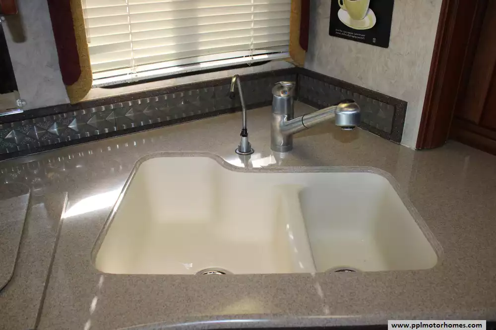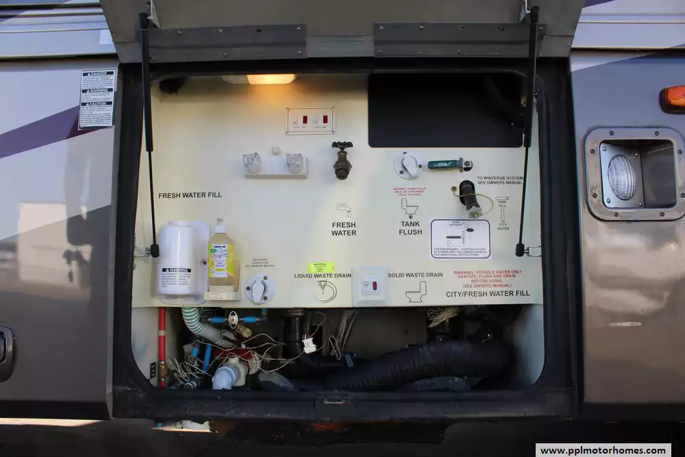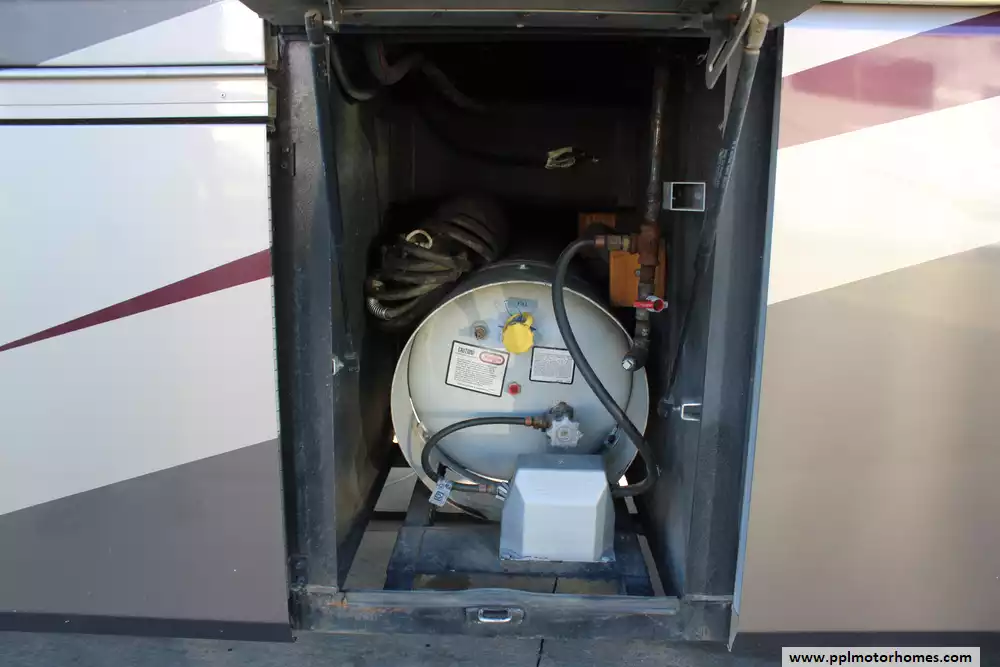 Specs: Length: 40.6 ft., Width: 8.37 ft., Height: 12.3 ft., Interior Height: 6.75 ft., Interior Width: 7.87 ft., Fuel Capacity: 100 gal., Total Fresh Water Tank Capacity: 100 gal., Total Gray Water Tank Capacity: 62 gal., Total Black Water Tank Capacity: 40 gal., Total Propane Capacity: 39 gal.