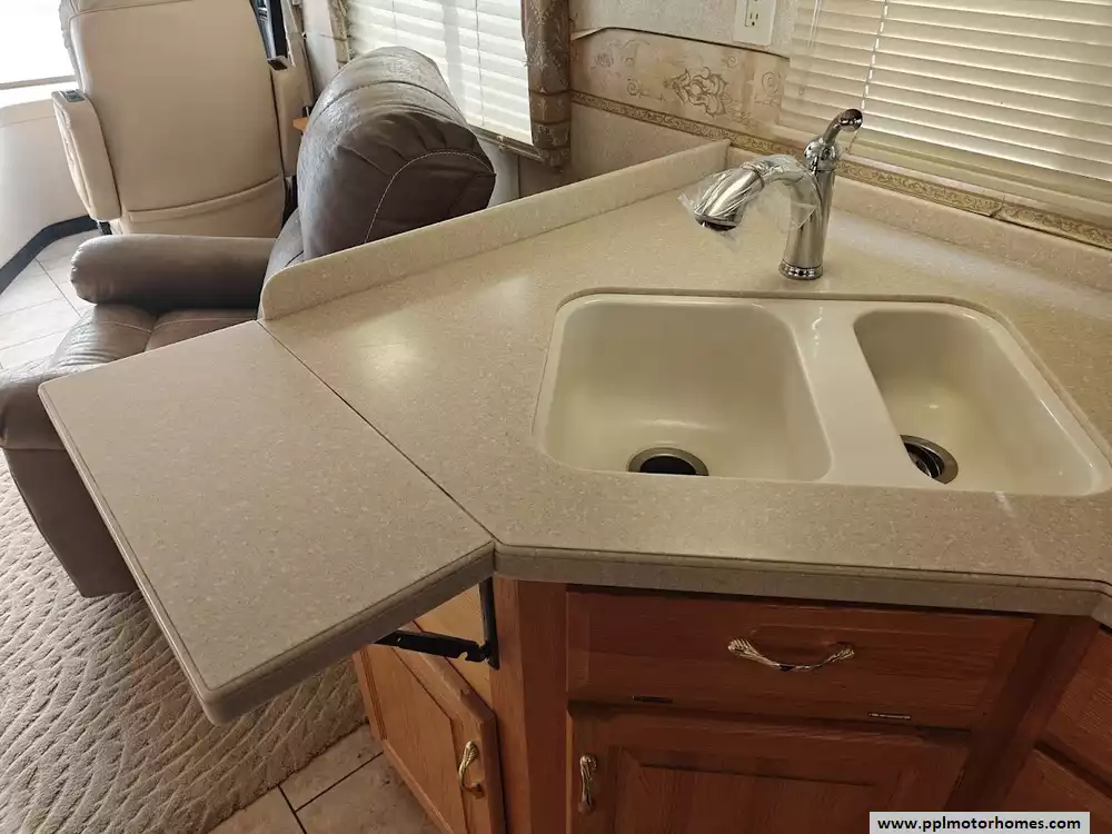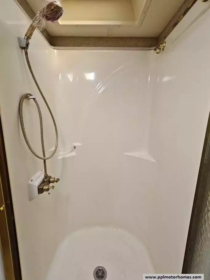 Exterior storage compartments offer ample space, An exterior shower, a black tank rinsing system, and a diesel generator.