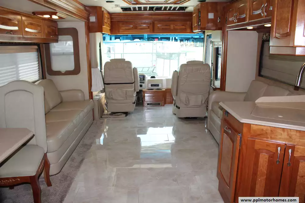 Specs: Length: 44.11 ft., Width: 8.37 ft., Height: 12.6 ft., Interior Height: 7 ft., Fuel Capacity: 150 gal., Total Fresh Water Tank Capacity: 100 gal., Total Gray Water Tank Capacity: 72 gal., Total Black Water Tank Capacity: 40 gal., Number of Propane Tanks: 1, Total Propane Tank Capacity: 25 gal.