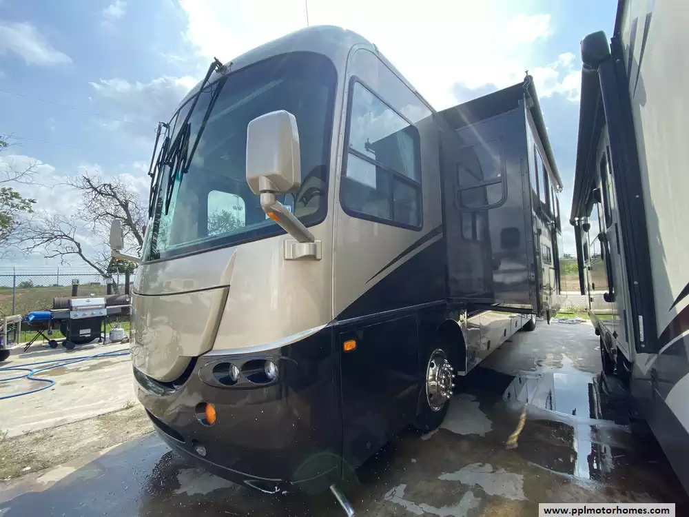 This 2006 Cross Country SE 376DS has a 300hp 5.9l Isb Cummins Engine On a Freightliner Chassis, Air Bag Suspension, Exhaust Brake, 2 Slide-outs, Onan Diesel Generator, 2 Ducted Air Conditioners, Levelers, Double Door Gas/110v Dometic Refrigerator, Automatic Main Awning And Slide Awning, Washer/Dryer Connections, Backup Camera, 2 TVs, DVD Player, Outside Shower, Convection Microwave, 3 Burner Range, Oven, TPMS, Portable Solar Panel 50 Watts