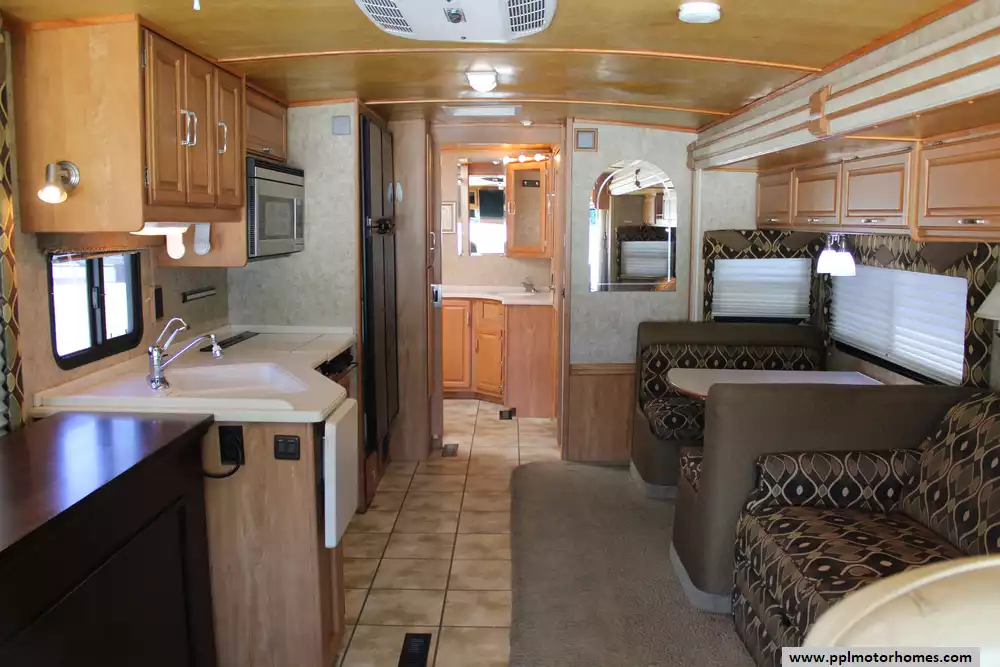 Specs: Length: 36.6 ft., Width: 8.5 ft., Height: 11.8 ft., Interior Height: 6.8 ft., Interior Width: 8.5 ft., Fuel Capacity: 90 gal., Total Fresh Water Tank Capacity: 92 gal., Total Gray Water Tank Capacity: 55 gal., Total Black Water Tank Capacity: 54 gal., Number of Propane Tanks: 1, Total Propane Tank Capacity: 31 gal.