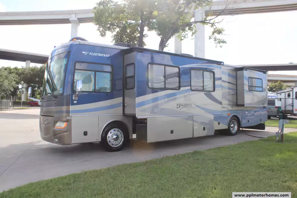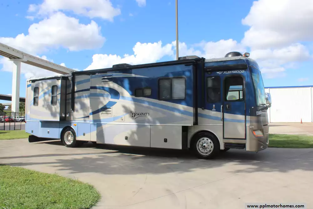 This 2007 Discovery by Fleetwood 39L designed for long-distance travel and full-time living. Features Include...330hp Caterpillar Engine On a Freightliner Chassis, Air Bag Suspension, Exhaust Brake, 4 Slide-outs, Onan Diesel Generator, 2 Ducted Air Conditioners, Levelers, 4 Door Gas/110v Norcold Refrigerator, Automatic Main Awning, Washer/Dryer, Backup Camera, Satellite Dish, Outside Entertainment System, 2 TVs, 2 DVD Players, Central Vac, Outside Shower, Convection Microwave, 3 Burner Range, and Oven.