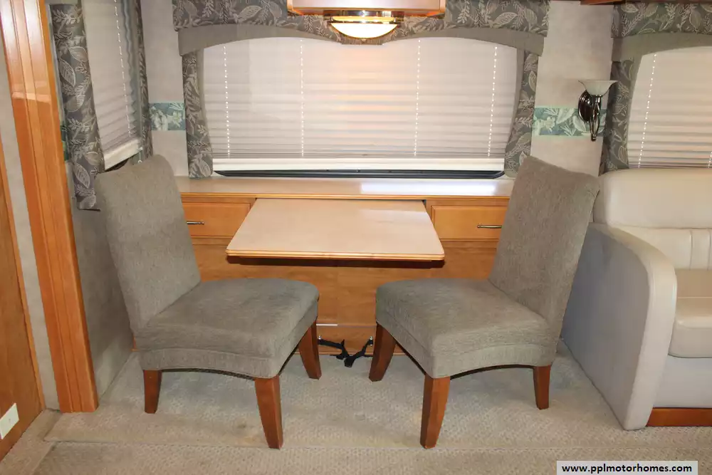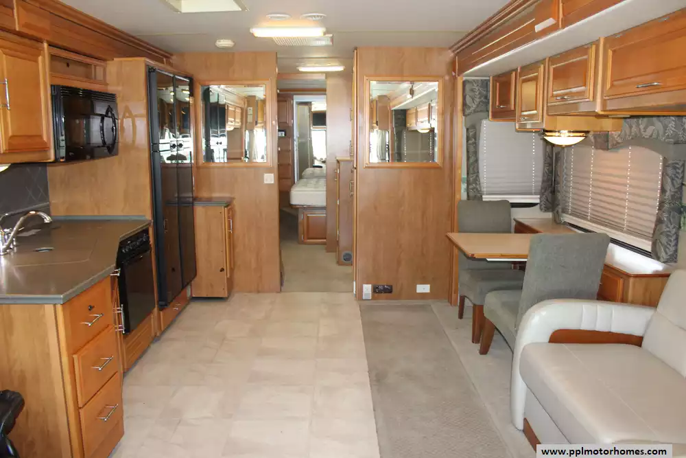 Specs: Length: 39 ft., Width: 8.5 ft., Height: 12.10 ft., Interior Height: 7 ft., Interior Width: 8 ft., Fuel Capacity: 90 gals., Total Fresh Water Tank Capacity: 86 gal., Total Gray Water Tank Capacity: 50 gal., Total Black Water Tank Capacity: 50 gal., Number of Propane Tanks: 1, Total Propane Tank Capacity: 38 lbs.