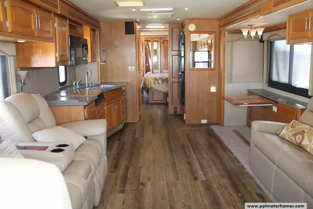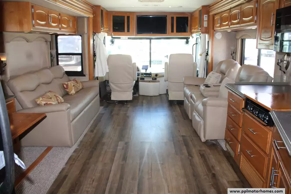 The 2007 Fleetwood Providence 39S is a premium Class A diesel-pusher motorhome that blends robust performance with residential-style comfort, built on a Freightliner chassis and powered by a 350 hp Caterpillar C7 diesel engine paired with an Allison 6-speed transmission for smooth highway driving. It typically features three slide-outs to expand its interior living space, a well-appointed living area with quality furnishings, a fully equipped kitchen with ample counter space and storage, and a private bedroom with a comfortable queen-size bed and full wardrobe. Inside you'll find high-end touches like solid-surface countertops, a Restonicr pillow-top mattress, dual roof-mounted air conditioners, a home entertainment system, and whole-coach water filtration, giving it a "home away from home" feel. Exterior amenities include automatic leveling, full-body paint, dual fuel fills, and generous basement storage, making the Providence 39S a capable and comfortable choice for long-distance touring and extended stays. Please ask a sales team member about known conditions.