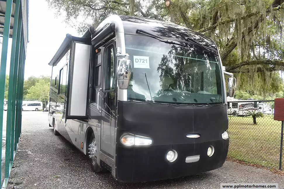 This 2007 Revolution by Fleetwood 40E has a 400hp Caterpillar Engine On a Spartan Chassis, 3 Slide-outs, Onan Diesel Generator, 2 Ducted Air Conditioners, Levelers, 4 Door Gas/12v Norcold Refrigerator, In-Fridge Ice Maker, Automatic Main Awning And Slide/Door Awnings, Washer/Dryer, Backup Camera, Solar Panel, Satellite Dish, Outside Entertainment System, 2 TVs, Outside Shower, Convection Microwave, 3 Burner Range, Oven