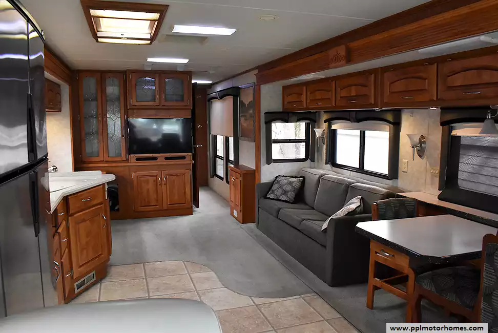 (Floor plan is NOT drawn to scale. Length of vehicle is approximate. Buyer is responsible for verifying actual length. PPL Motor Homes compiled this list of features, specifications, equipment and options as a guide. No representation or warranties, either express or implied, are made as to the accuracy of the information herein. Please verify for yourself all items listed before purchase.)