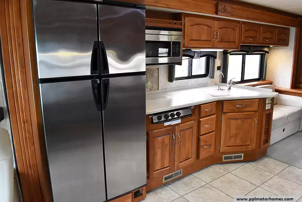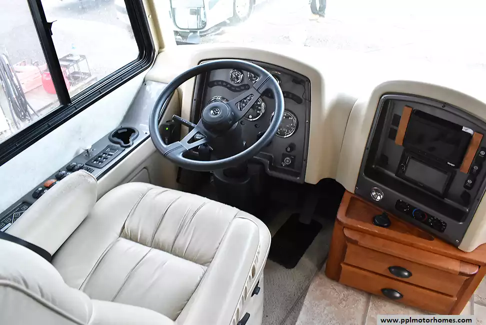 This 2007 Holiday Rambler Ambassador 40Skt has a 330hp 8.3l Cummins Engine On a Roadmaster Chassis, Air Bag Suspension, Exhaust Brake, 3 Slide-outs, Onan Diesel Generator, 2 Ducted Air Conditioners, Levelers, 4 Door Gas/110v Dometic Refrigerator, In-Fridge Ice Maker, Automatic Main Awning And Slide Awning, Backup Camera, Heated Tanks, 2 TVs, Outside Shower, Central Vacuum, Microwave, 3 Burner Range