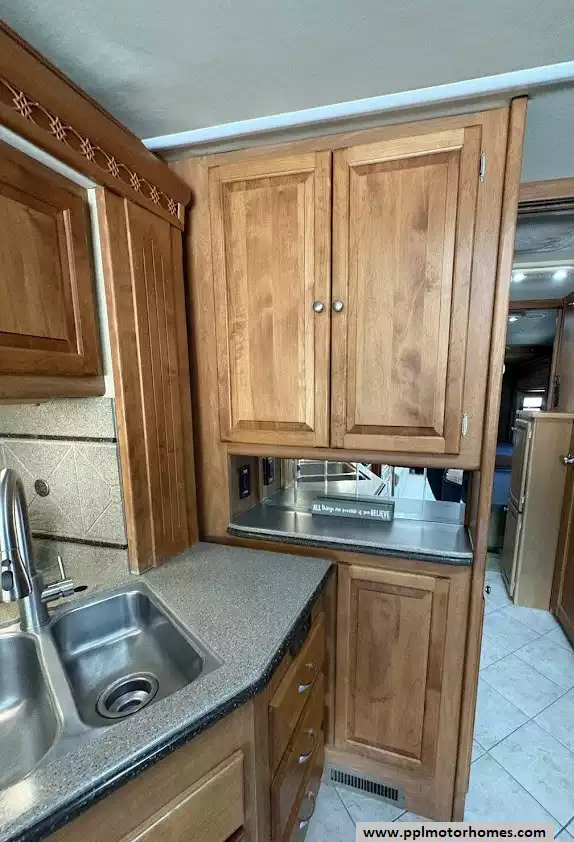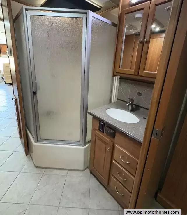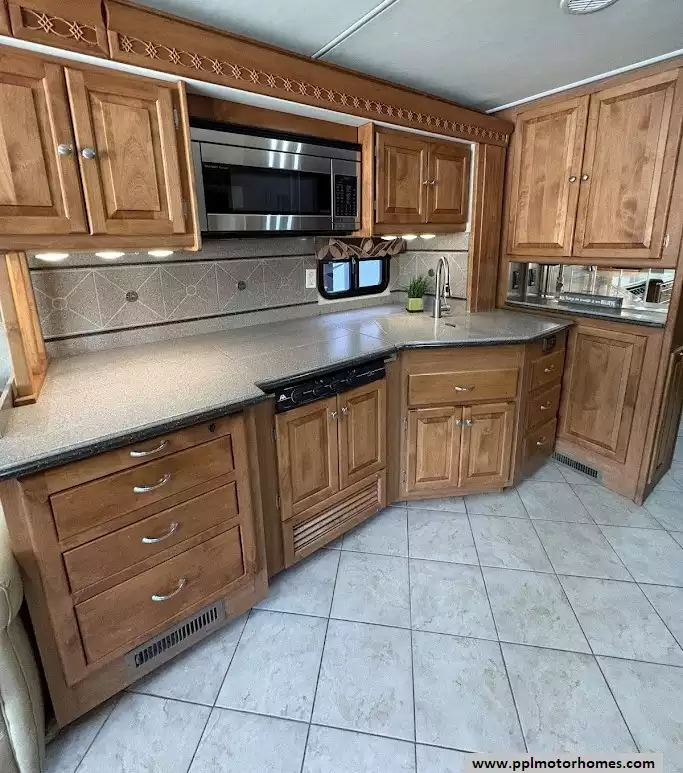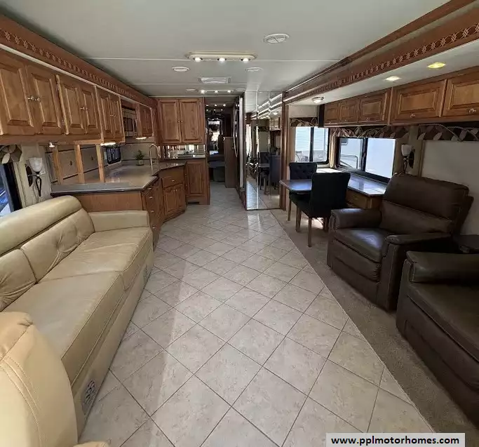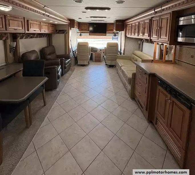 Step inside to discover the exceptional craftsmanship that has made the Phaeton Tiffin's best-selling model, featuring beautiful tile flooring and high-quality wood cabinetry built to last. The well-appointed kitchen comes equipped with a reliable refrigerator to keep your supplies fresh for the long haul, while the unique bathroom layout offers a spacious retreat with its signature garden tub and private water closet. Combining legendary Tiffin reliability with a thoughtfully designed interior, this motorhome is ready to provide comfort and class for all your future adventures.