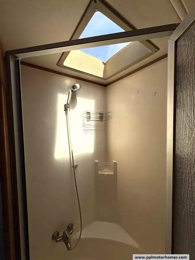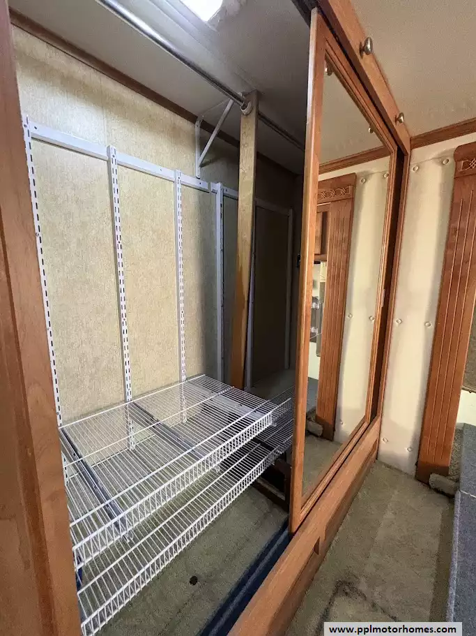 RV currently has a queen mattress but can accomidate a narrow king mattress.