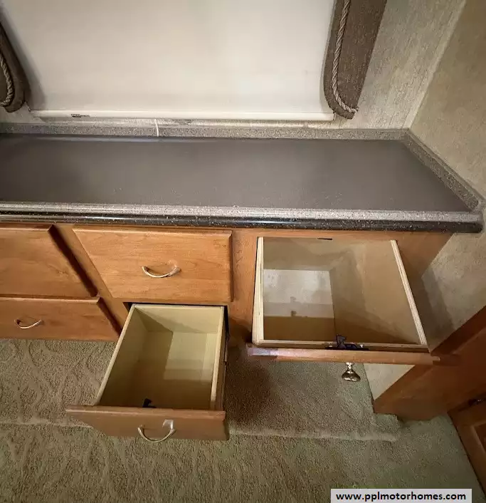 (Floor plan is NOT drawn to scale. Length of vehicle is approximate. Buyer is responsible for verifying actual length. PPL Motor Homes compiled this list of features, specifications, equipment and options as a guide. No representation or warranties, either express or implied, are made as to the accuracy of the information herein. Please verify for yourself all items listed before purchase.)