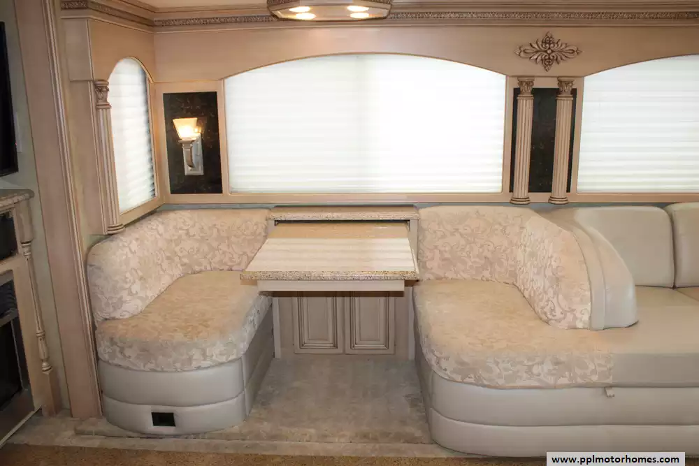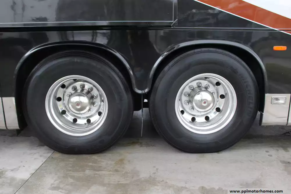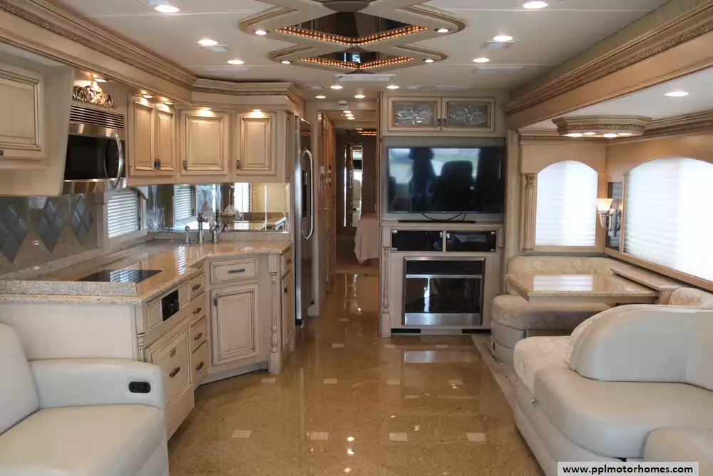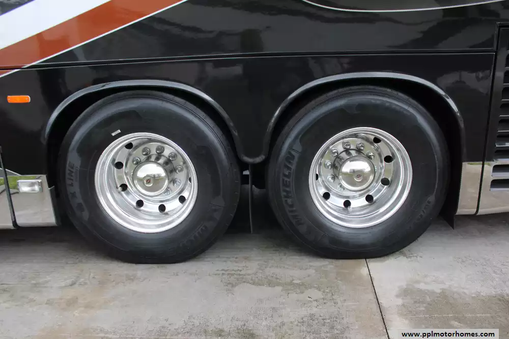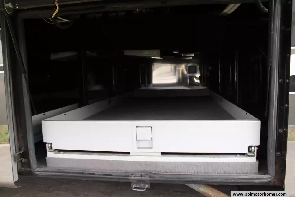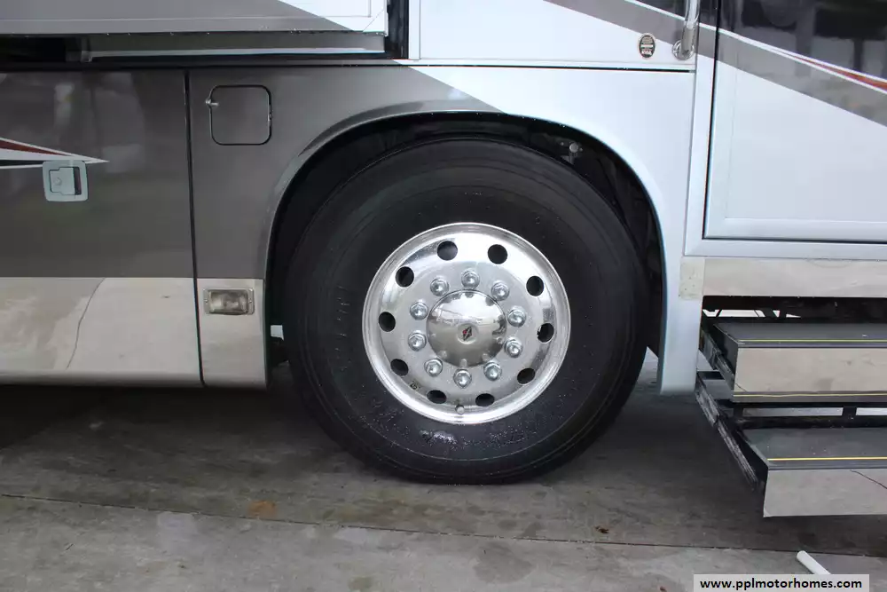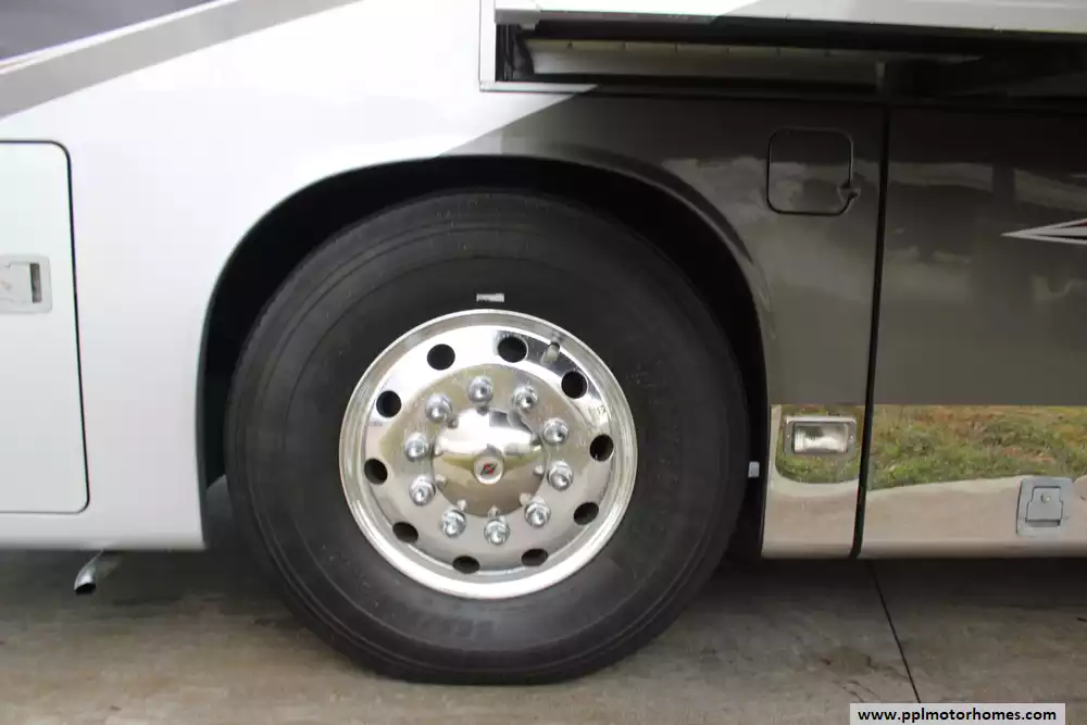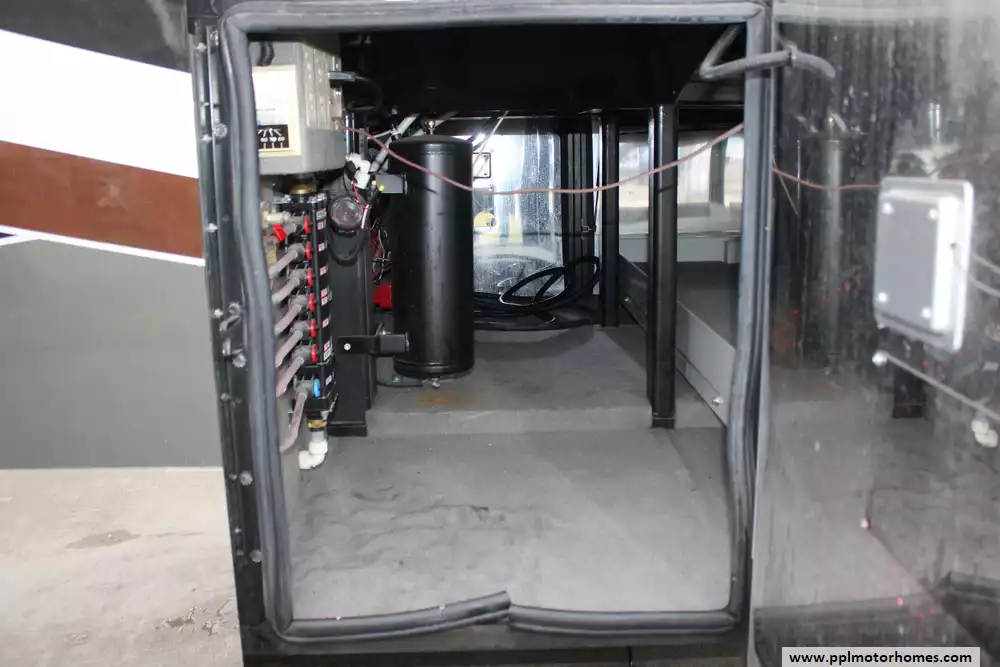 Specs: Length: 44.11 ft., Width: 8.41 ft., Height: 13.1 ft., Interior Height: 7 ft., Interior Width: 8 ft., Fuel Capacity: 150 gal., Total Fresh Water Tank Capacity: 100 gal., Total Gray Water Tank Capacity: 60 gal., Total Black Water Tank Capacity: 60 gal.